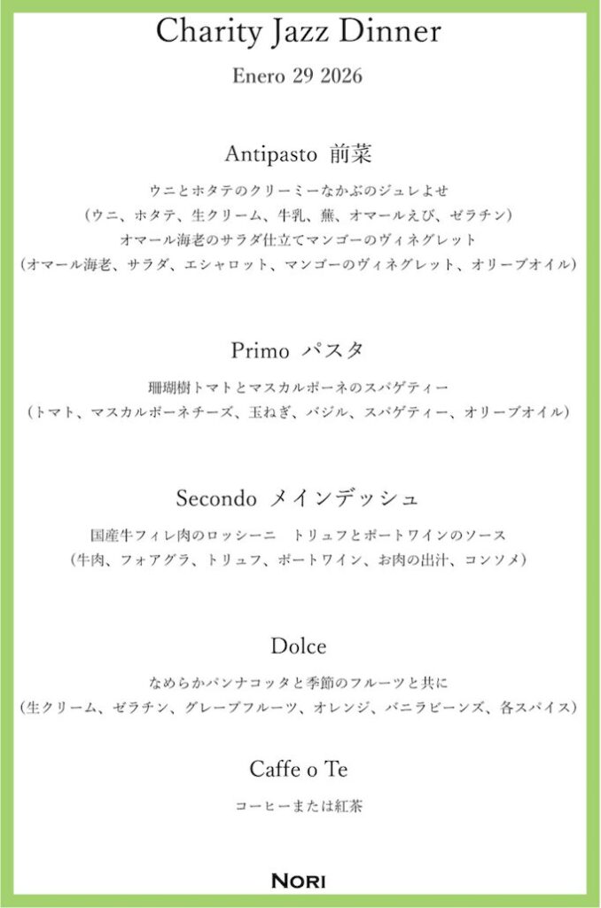 2024年・2025年に引き続き、「Jazz Dinner Party「ペースト食ありのコース料理」を家族みんなで楽しもう!」を開催します!