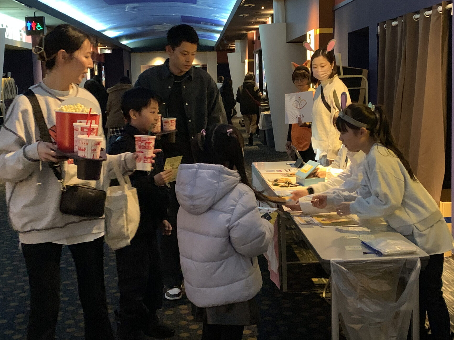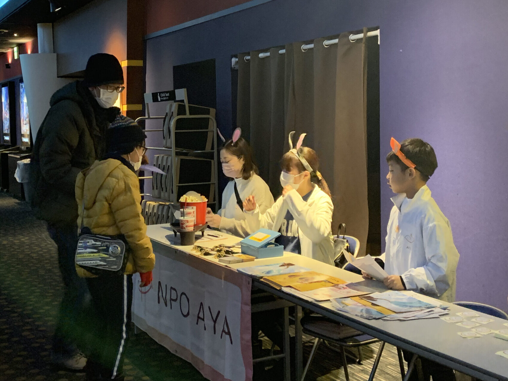 シアター内は通常の上映よりも少し明るく、手元が見えるくらいの照明で上映を行いました。