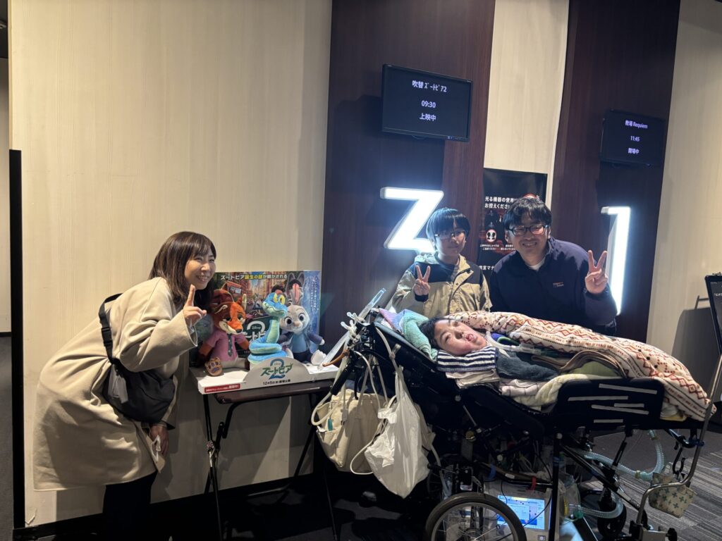 - 映画は好きなようで声を出して笑ったり、びっくりしたりいろんな表情してくれました。長く車椅子に座ると嫌がる子ですが、とても楽しんでいた様子で良かったです。ありがとうございました。