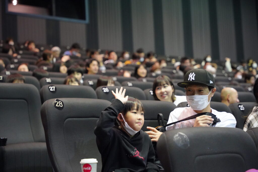 映画が終わると、「楽しかった!」と笑顔でシアターから出てくる子どもたちの姿が。スタッフにハイタッチをして退場する姿も見られ、とても微笑ましい光景が広がっていました。