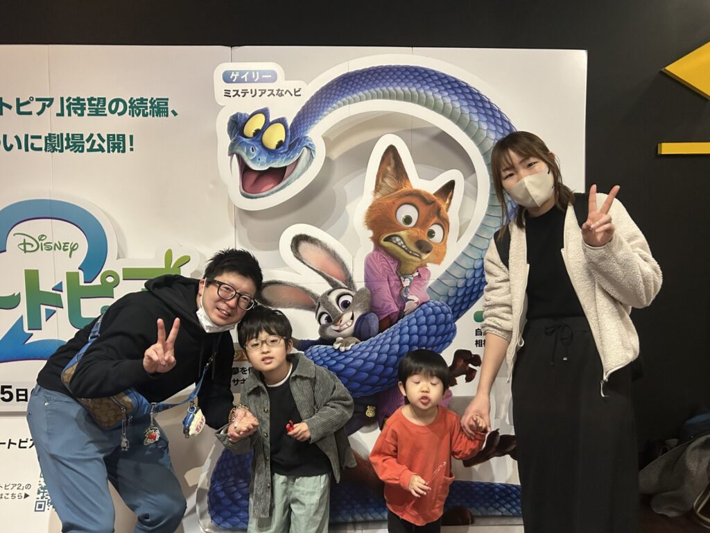 ズートピアのスタンディ前は人気の記念撮影スポットとなり、上映前後を通して多くのご家族が写真撮影を楽しんでいました。