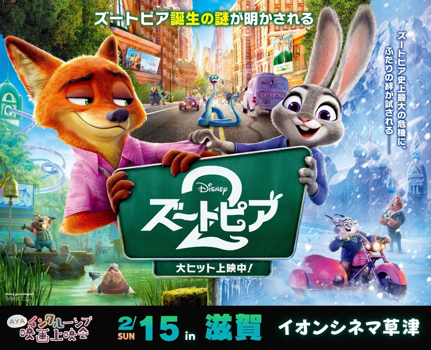 シアターを貸切にして『ズートピア2』(吹替版)を鑑賞するイベントです。