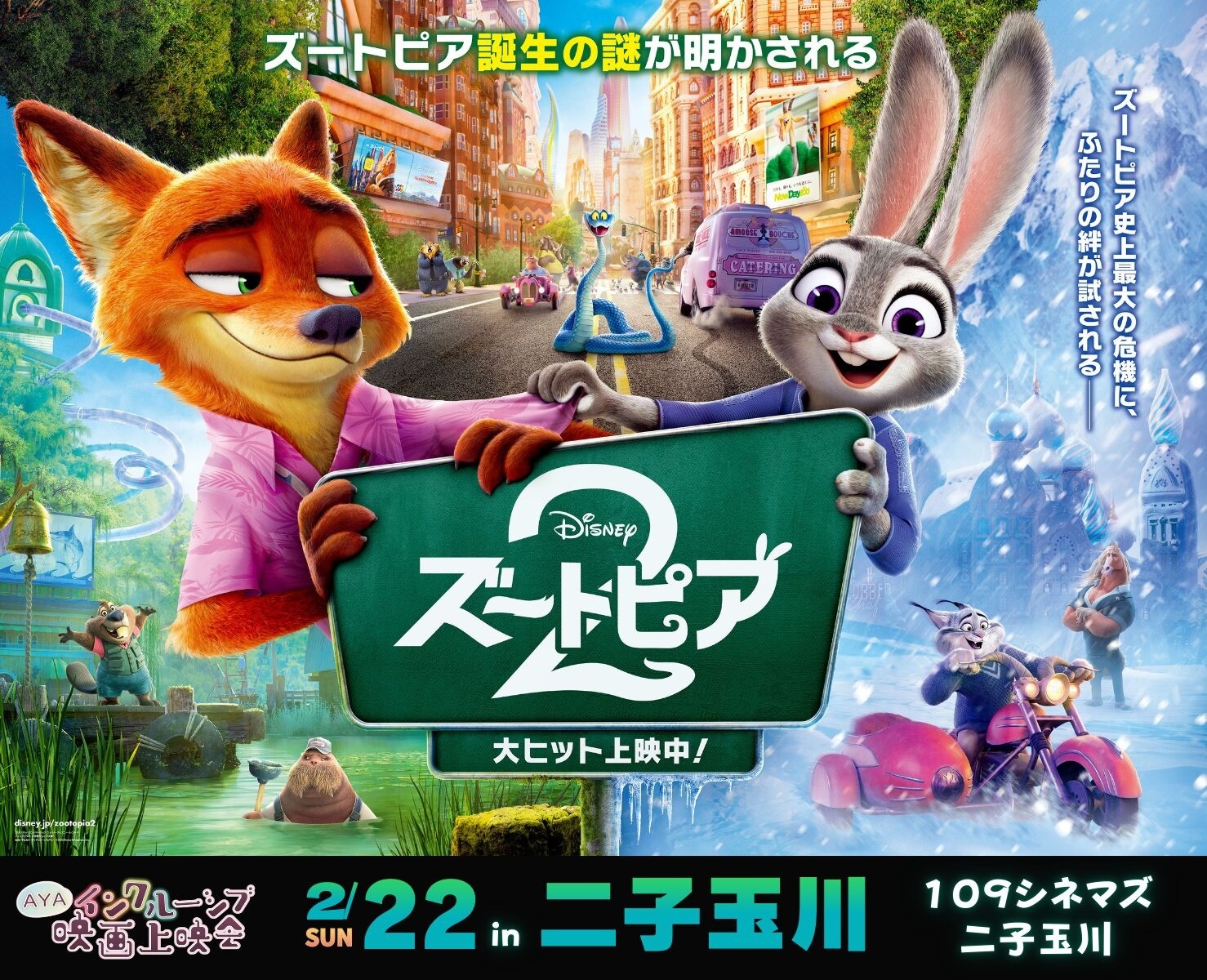 シアターを貸切にして『ズートピア2』(吹替版)を鑑賞するイベントです。