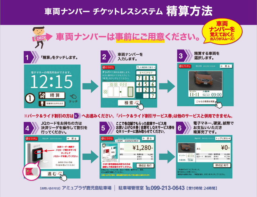 ※対象となる駐車場は、アミュプラザ鹿児島(立体駐車場)東1/東2駐車場とアミュプラザ鹿児島(立体駐車場)西1/西2駐車場となります