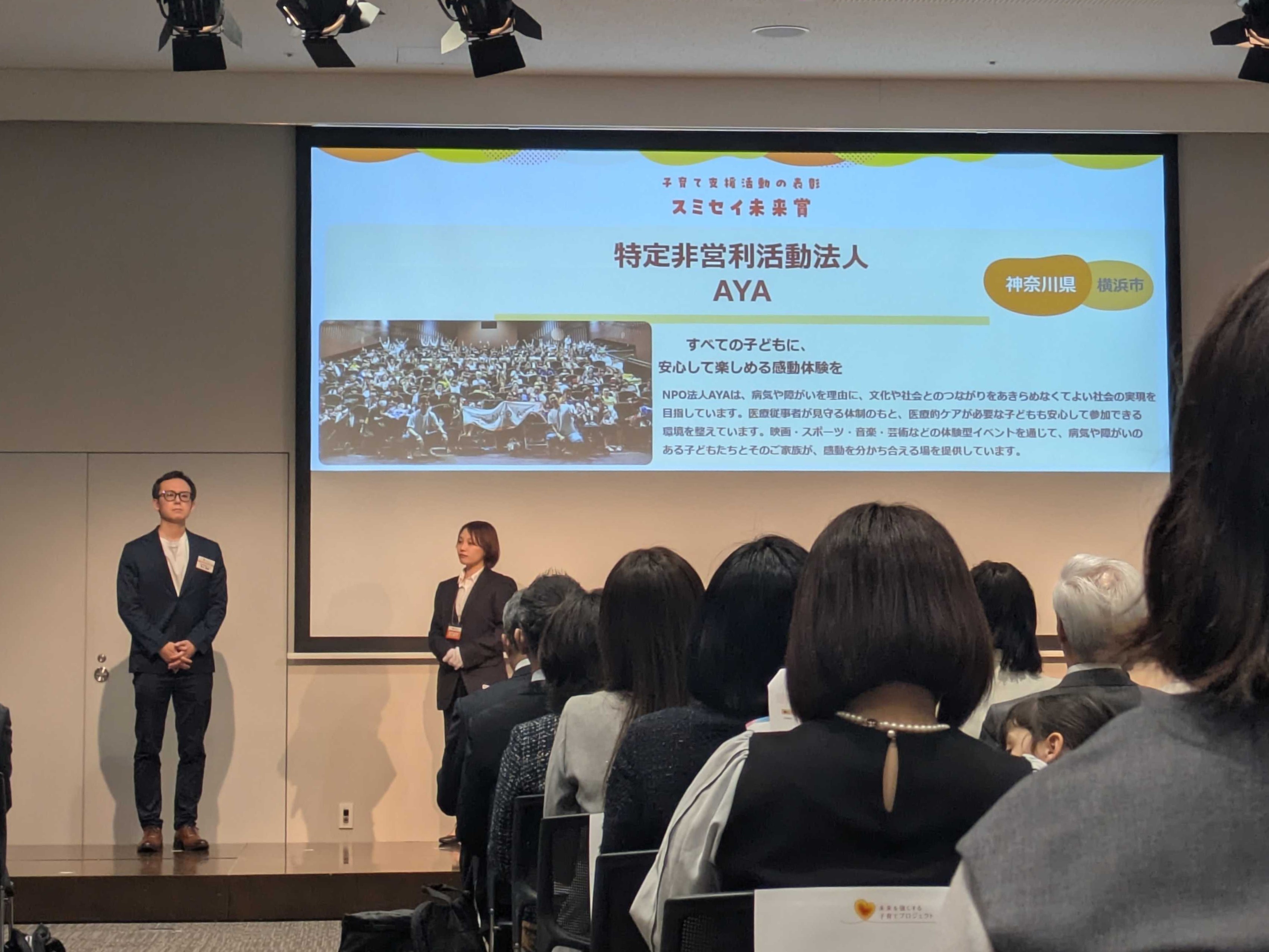 認定NPO法人AYAは、住友生命保険相互会社が主催する「第19回 未来を強くする子育てプロジェクト」にて、スミセイ未来賞を受賞しました。