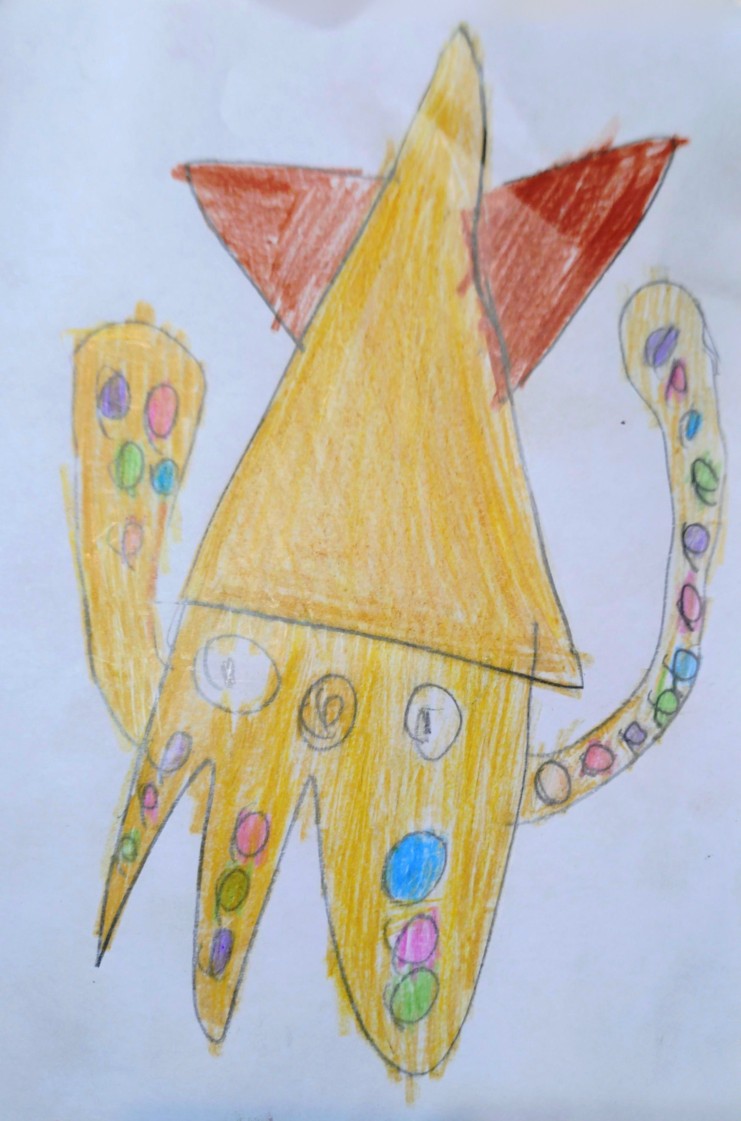●作品への想い この作品は「オリジナルキャラクターを作ろう!」という学習の中から生まれました。この不思議な形はRYUONさんの膝小僧をスタンプしたものです。狙わずに誕生した、まるで海の生き物のようなキャラクターです。 ●審査員・SHO WATANABEさんのコメント 素敵な作品を見て嬉しく思いました。RYUONくん、これからも自由な発想で絵を描く楽しさを続けていってください。 |