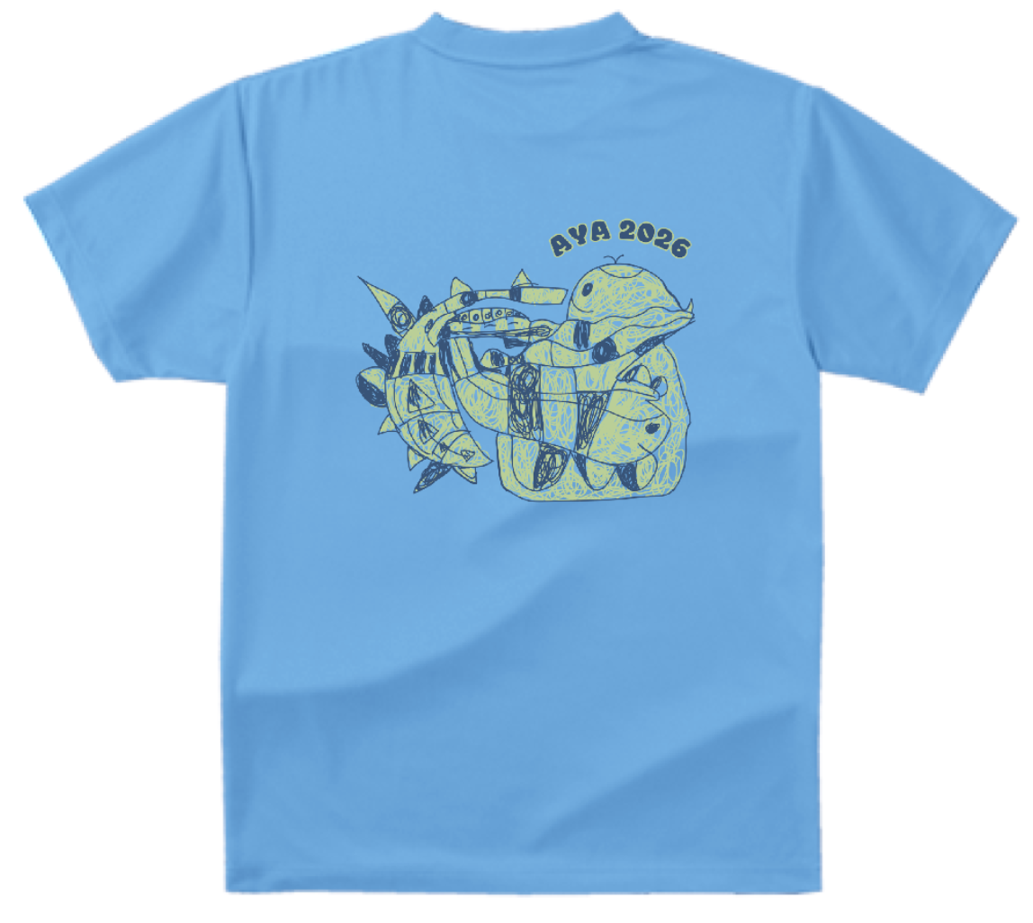 本コンテストで最優秀賞を受賞した、SAKUTOさんの作品をデザインしたTシャツは、2026年にAYAのイベントボランティアに参加してくださった皆さまへ配布いたします。