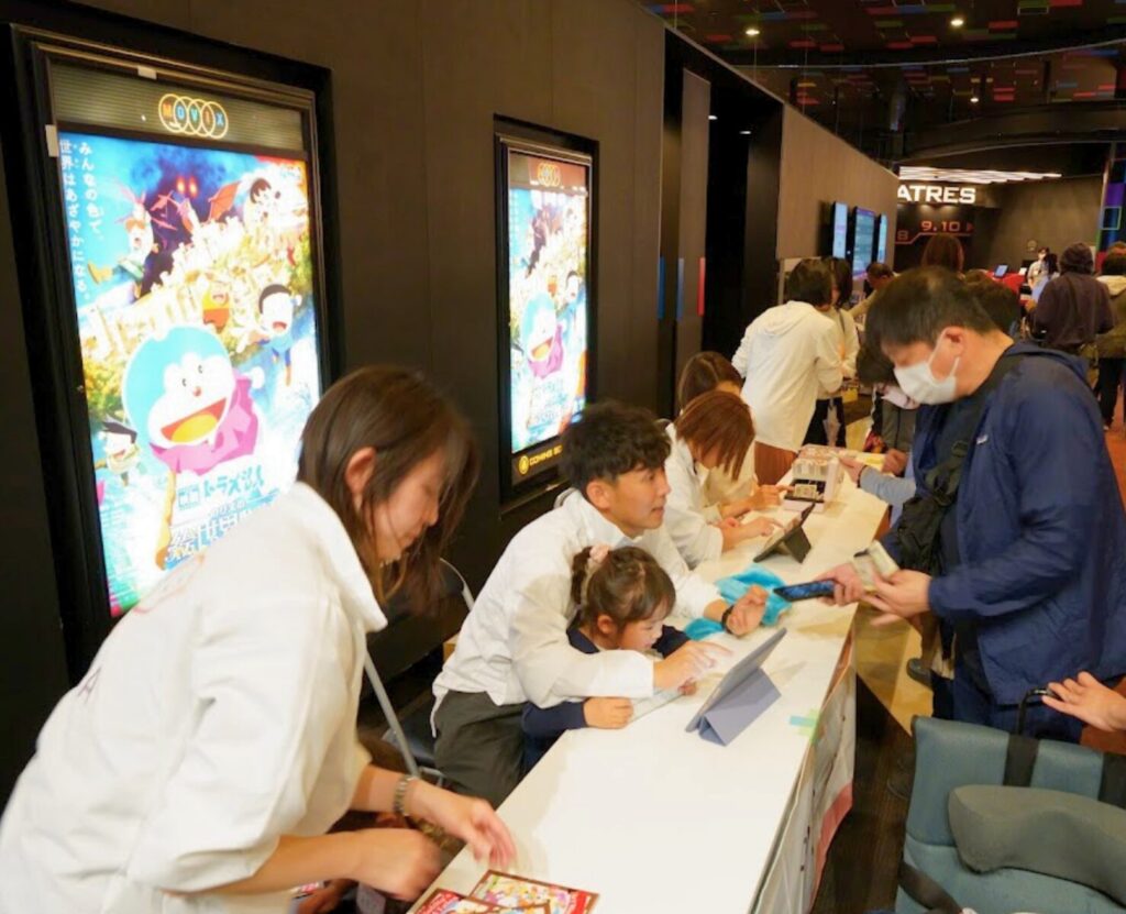 シアター内は通常の上映よりも少し明るく、手元が見えるくらいの照明で上映を行いました。会場中の視線はドラえもんの世界にくぎ付けに。