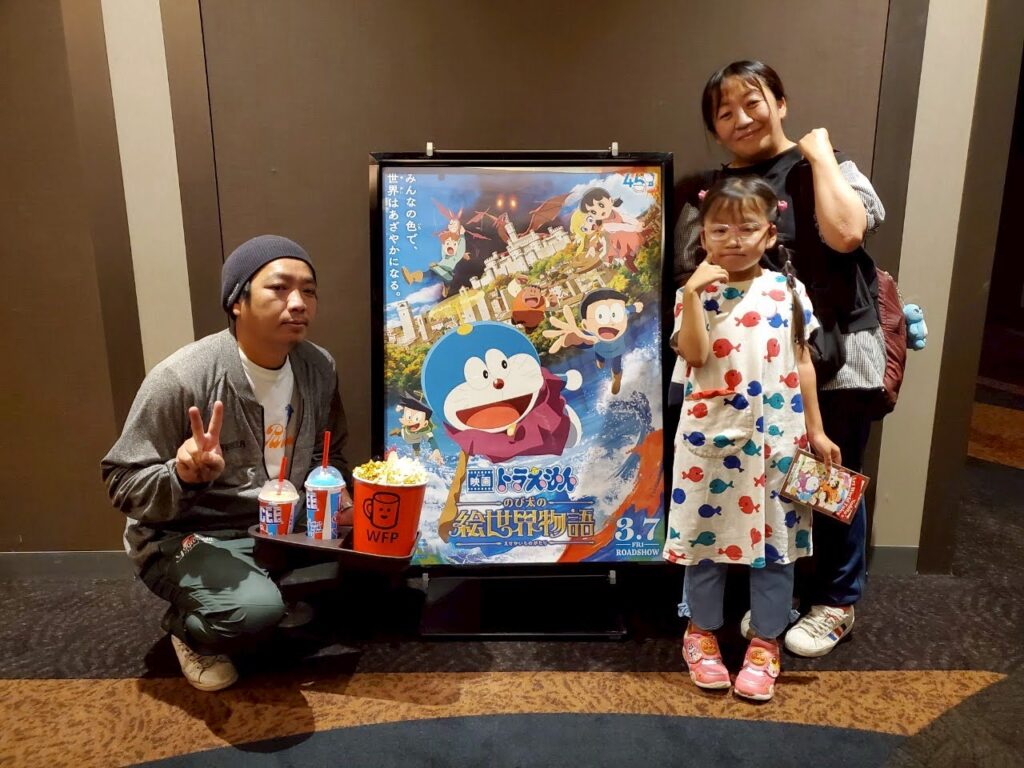 ドラえもんのTシャツを着て、家族揃って初めて映画に来ましたと嬉しそうに話してくれるご家族の方もいらっしゃいました。今回のイベントを機に、映画を観る楽しさを感じてもらえたら嬉しいです!