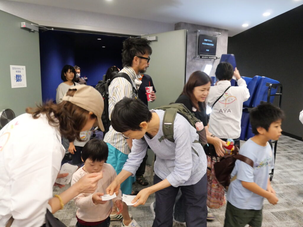映画館が初めての家族が多く、最後まで観れなかったり、途中何度も劇場の外に出てしまうお子さんもみえましたが、みなさん初めて劇場内に入れたことをとても喜んでみえたのが嬉しかったです。