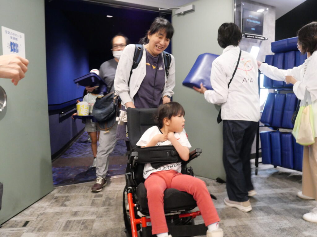 また今回初めてご家族で映画に挑戦くださった家族のお父さんが、上映前に「どれぐらいの声を出したら外に出た方が良いですか?」と聞いてこられました。もちろん「そんなことは気にしないで自由に声を出させてあげて下さい。」とお伝えしました。そして誰もが映画を楽しめる優しい空間の中で、このご家族は最後まで映画鑑賞をすることができました。