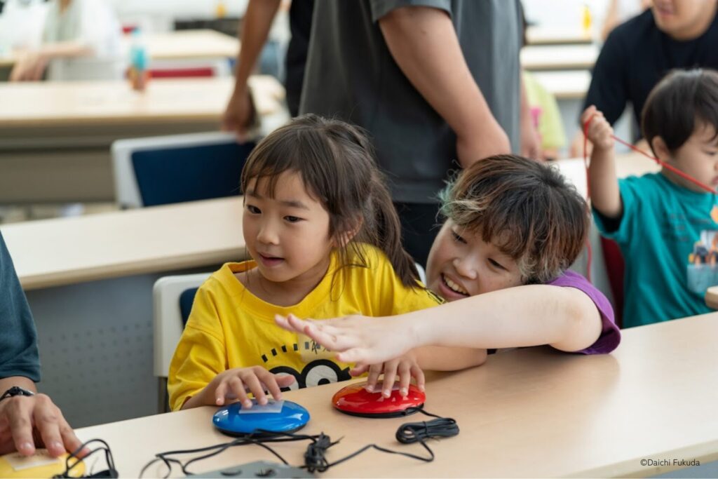 いろんなボタン・スイッチを外付けできるアダプターを使用し,各チーム異なる設定でチャレンジしました。