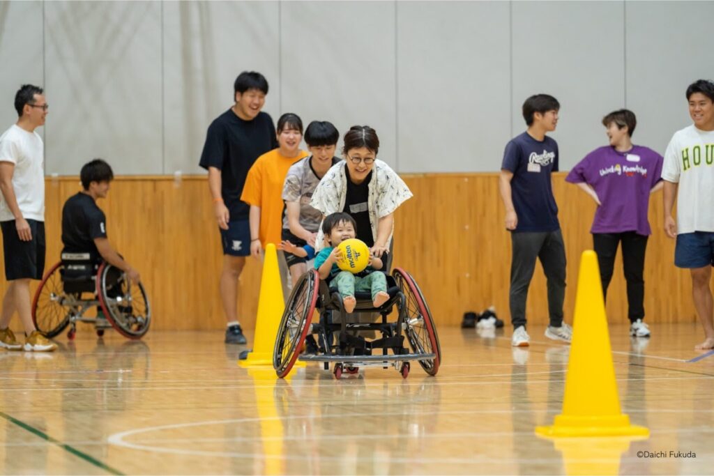 最初の競技は車椅子バスケ!プロである前田柊選手と一緒に楽しみました!