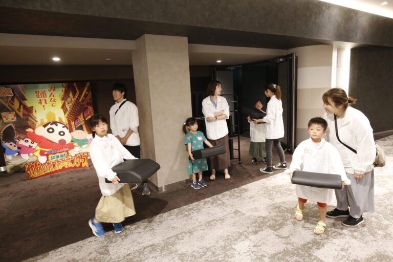 また、今回のクレしんはミュージカル調で参加した子らに馴染みやすく一緒に歌ったり、中には踊ったりしている子らが複数見受けられました。また映画の中のしんちゃん達を応援する子らも沢山いました。親御さんも笑顔の方がたくさんで、家族皆で一緒に楽しんでくれているのが伝わって来て、きっと今回参加した人たちが次回もっと人を呼んでくれると感じました。