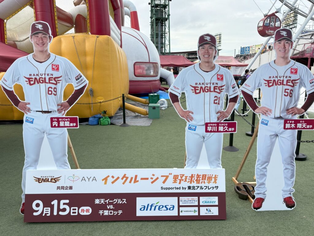 昨年に引き続き2回目となりましたこのインクルーシブ野球観戦 Supported by 東北アルフレッサ の企画は、株式会社楽天野球団の皆様との共同企画になります。