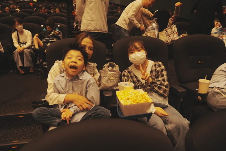 シアター内に入ると、ご家族同士で交流をされている方・くつろいで上映を今か今かと待ちわびている子ども達の姿など様々な様子が見られました。