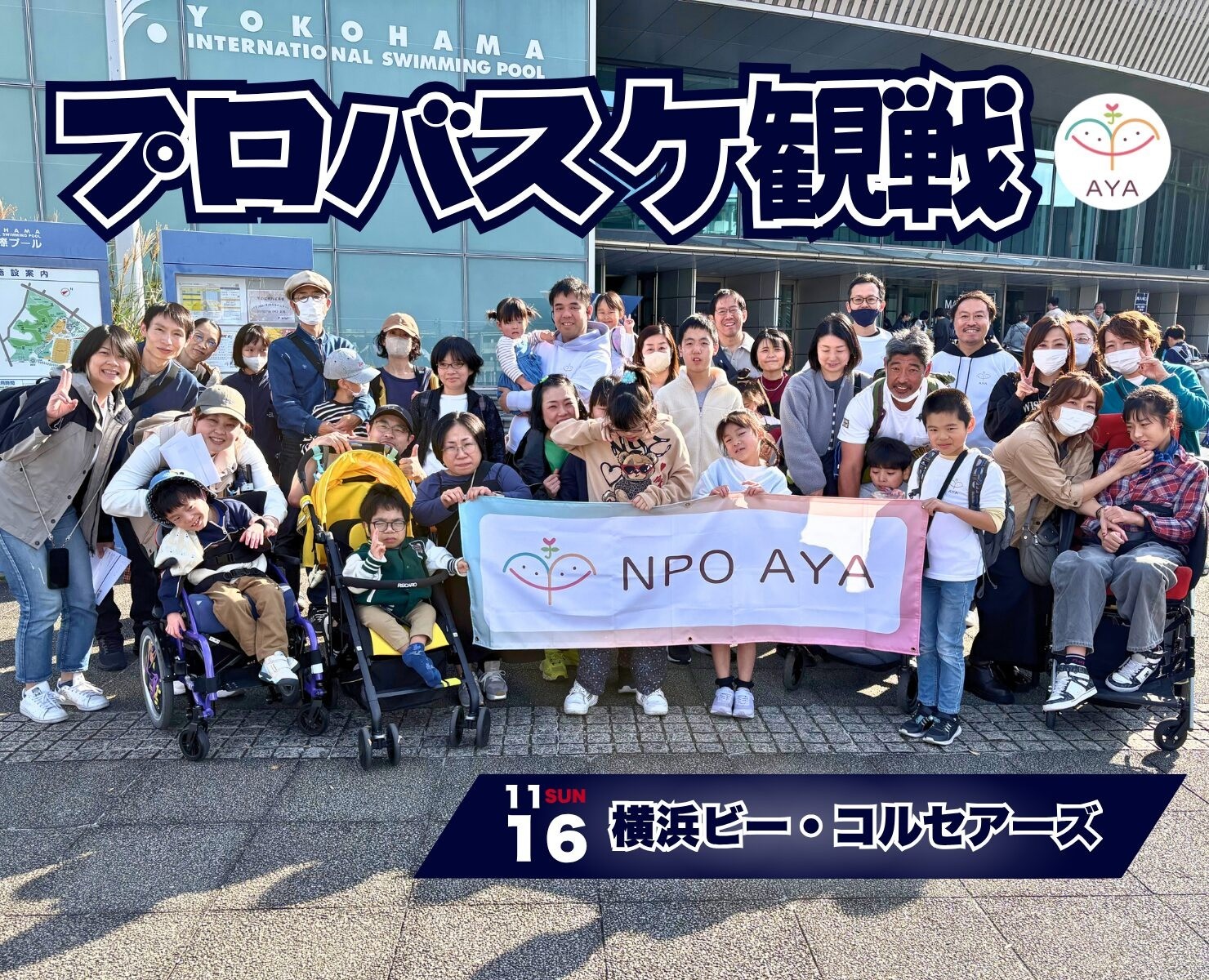 2025年11月16日、横浜国際プール(神奈川県横浜市)にて、プロバスケの試合「バスケットボール@横浜ビー・コルセアーズ」を観戦するイベントを開催しました!