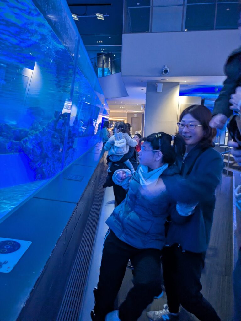 皆様驚きながらも笑顔で写真タイム!家族で水族館をゆっくり楽しむということがあまりできていなかった方も多く、その表情は非常に朗らかでした。