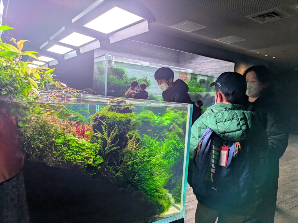 深さのある大きな水槽の前で、椅子に座って見上げているご家族も多く、癒やしの空間になっているのかなと思いました。