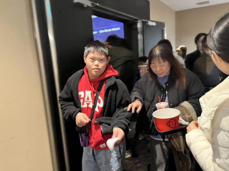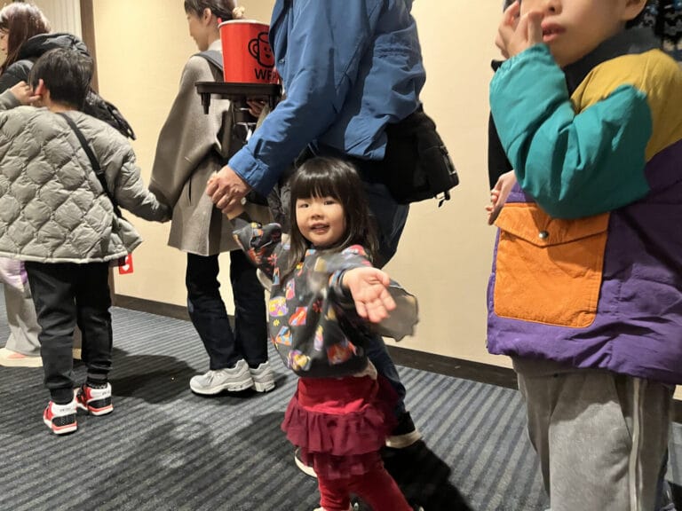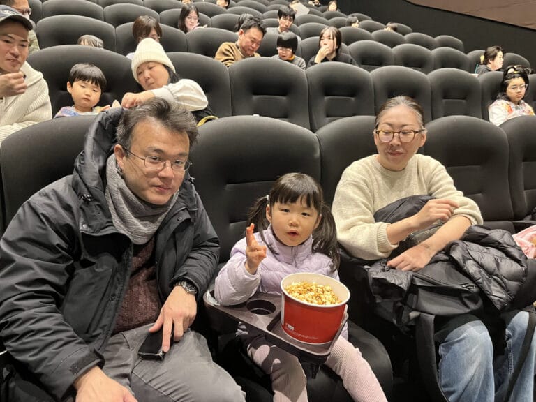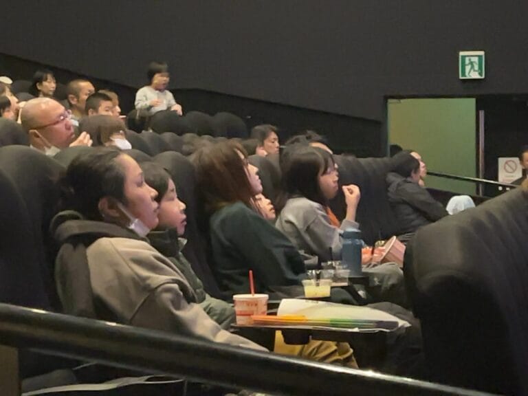 いつものように上映前に前後左右のご家族同士で挨拶をすることで、今日は一緒に映画を楽しみましょうという和やかな雰囲気が作られました。ポップコーンを食べながら開始を待っている姿からはワクワクしている様子が伝わってきますね!