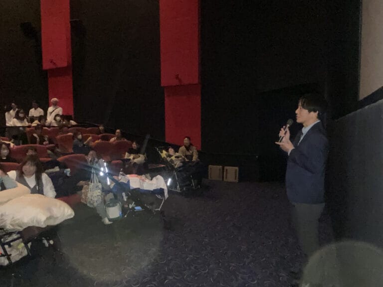 映画上映開始にあたり、AYAのスタッフと、TOHOシネマズ 橿原の劇場支配人の鈴木様から挨拶をさせていただきました。
