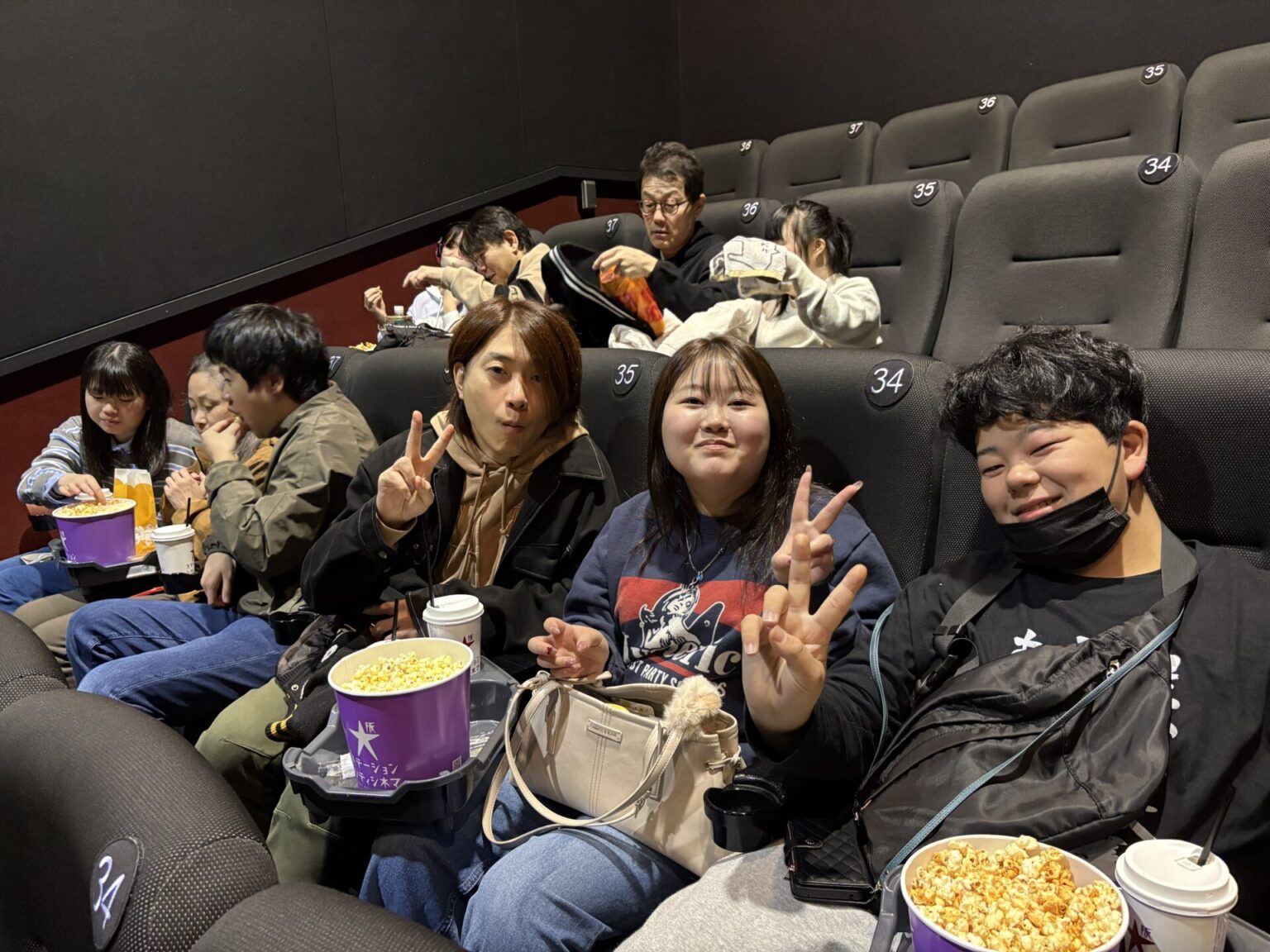 劇場内では、ポップコーンを片手に、上映開始を楽しみに待っている皆さんの姿をパシャリ! この日は初参加の方も多く、ワクワクは最高潮に!