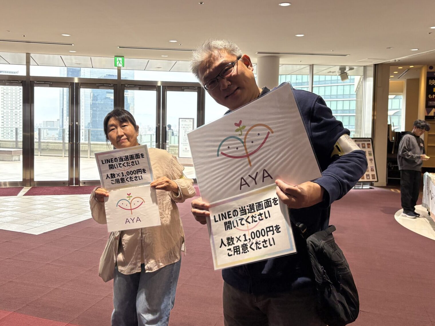 上映開始にあたり、AYAのスタッフと、大阪ステーションシティシネマの代表者の衛藤様から挨拶をさせていただきました。