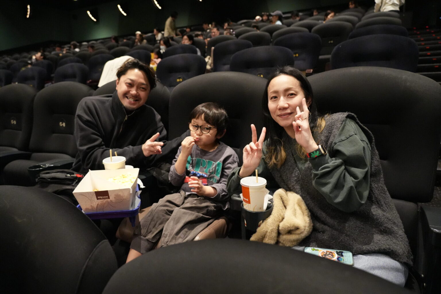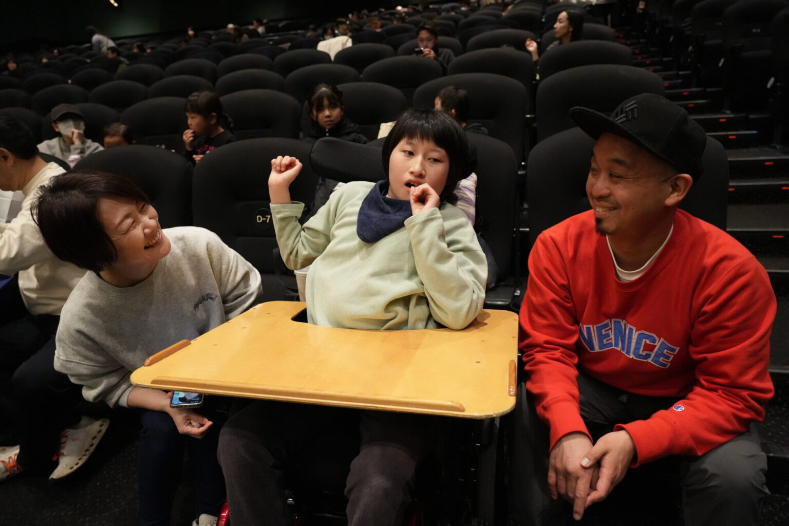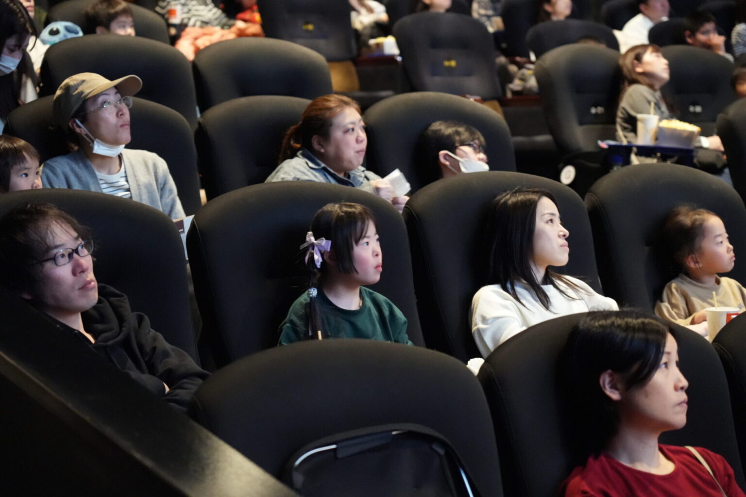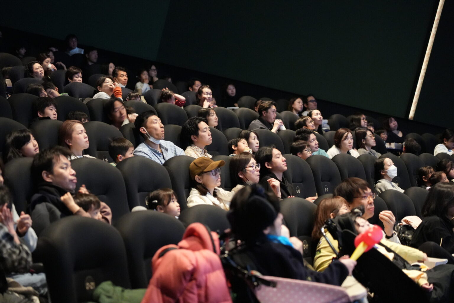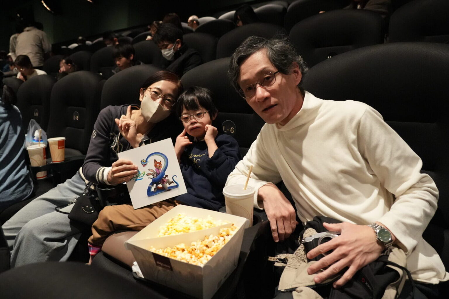 上映開始を待つ皆さんの姿をパシャリ。「ズートピアのファンなんです」とお話しされたご家族は、お子さんがキャラクターの帽子とブランケットでコーディネートされていました!