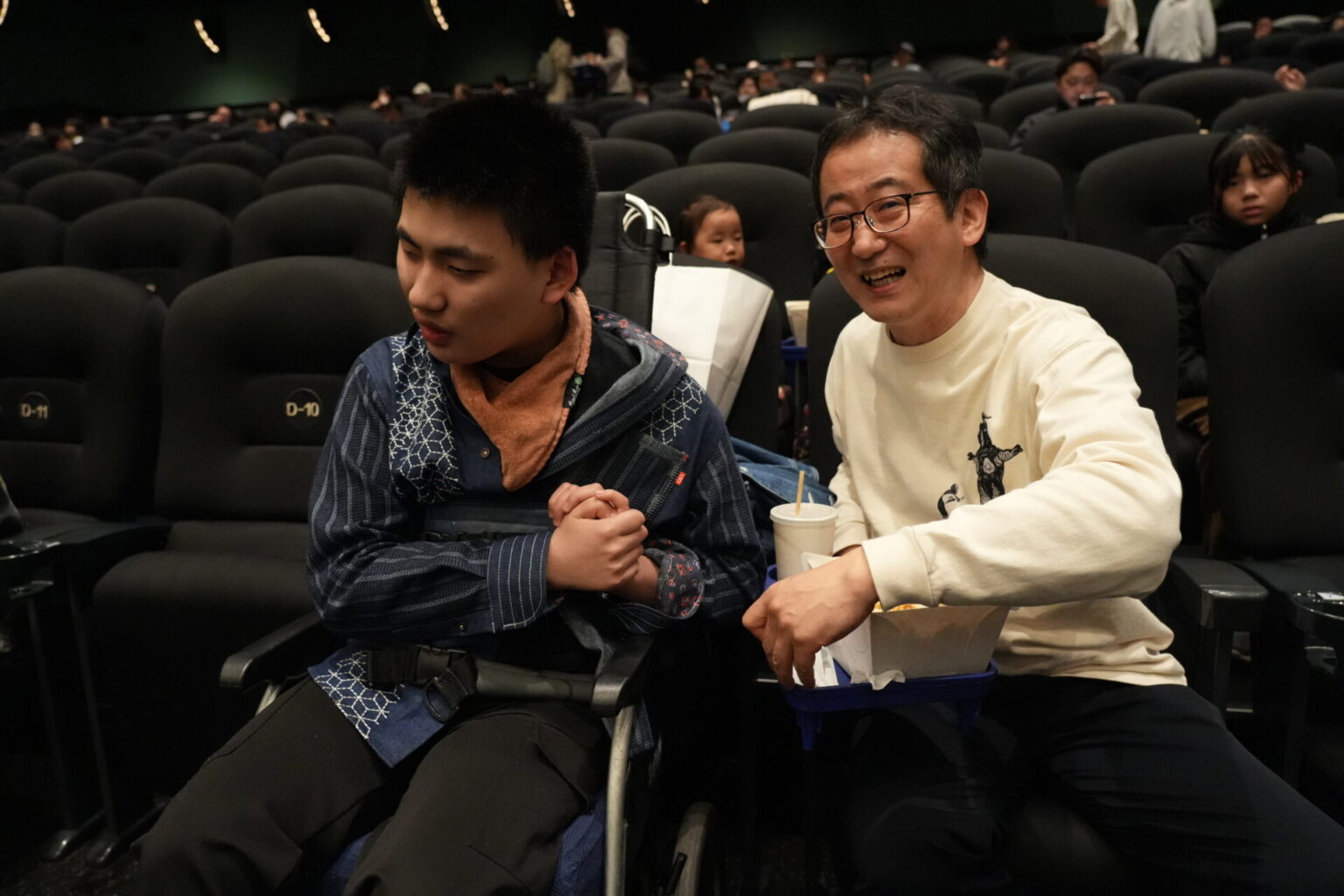 シアター内は通常の上映よりも少し明るく、手元が見えるくらいの照明で上映を行いました。