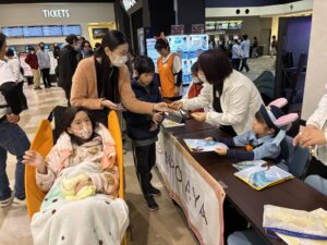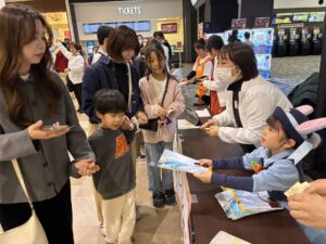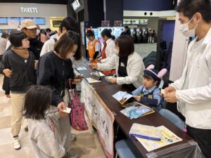 映画館のロビーには、開場前からたくさんのご家族が集まってくださりました! 今回より事前決済を導入し、スムーズに入場していただくことができました。