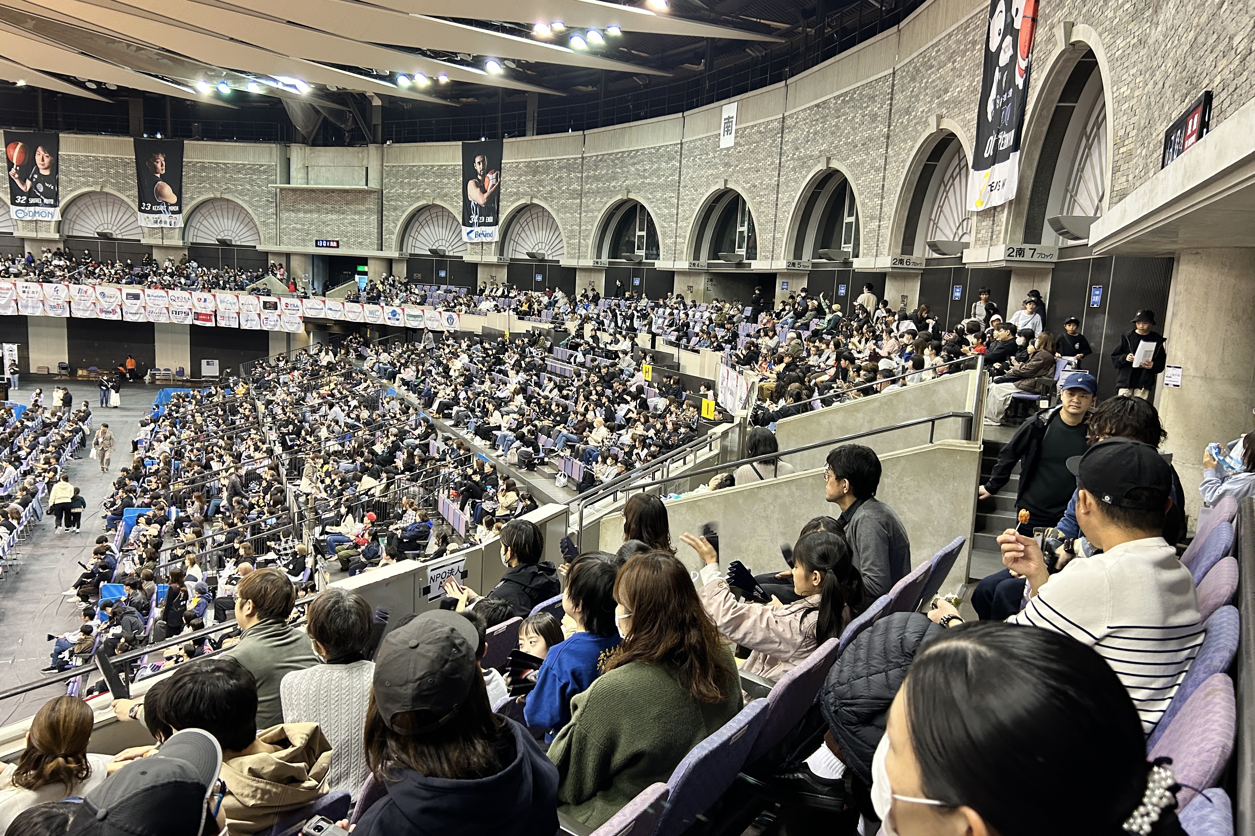 当日は試合を楽しみに訪れた多くの観客でアリーナ周辺もにぎわい、会場は試合前から活気に包まれていました。参加者の皆さんも、これから始まる観戦を楽しみにしながら会場へと向かいました。