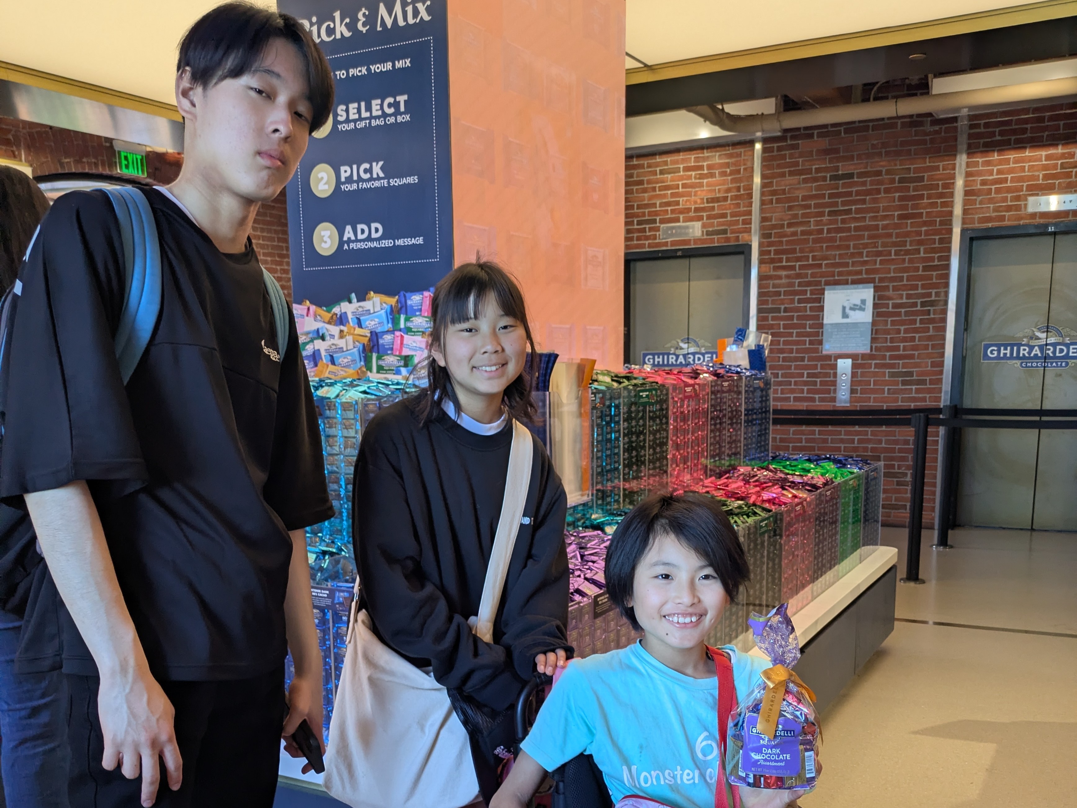 その後は、有名なチョコレート屋さん・Ghirardelli Chocolate Experienceへ。 たくさんのチョコレートやアイスクリームに、一同大興奮! 今朝乗ったケーブルカーの形のチョコレートもありましたよ。