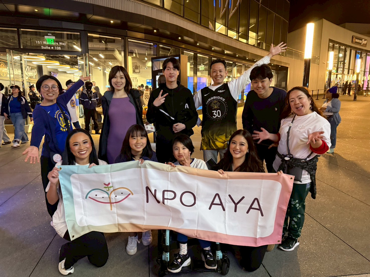 2組のご家族とスタッフ、計8名が参加しました。今回の企画は、ゴールデンストリート・ウォリアーズの試合観戦です。AYAとしては2023年以来、2度目のNBA観戦プログラムとなりました!