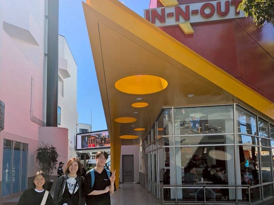 参加者からの要望もあり、まずはアメリカで人気のバーガーショップ、IN-N-OUT BURGERへ! ピクニック形式で、海風の音と海鳥の鳴き声を聞きながら、ジューシーなハンバーガーを堪能しました。