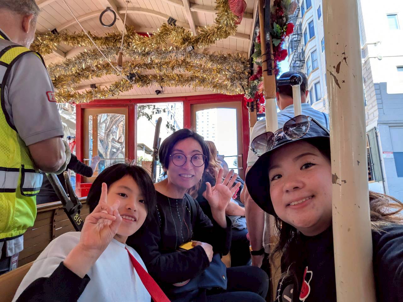 目的地へは、サンフランシスコ名物のケーブルカーで向かいます。運転手さんや他の乗客の方々は親切に車いすを優先してくれました。狭い住宅街の合間を縫って進み、サンフランシスコの景色や風を味わっているうちに、あっという間にFisherman's Wharfに到着です。
