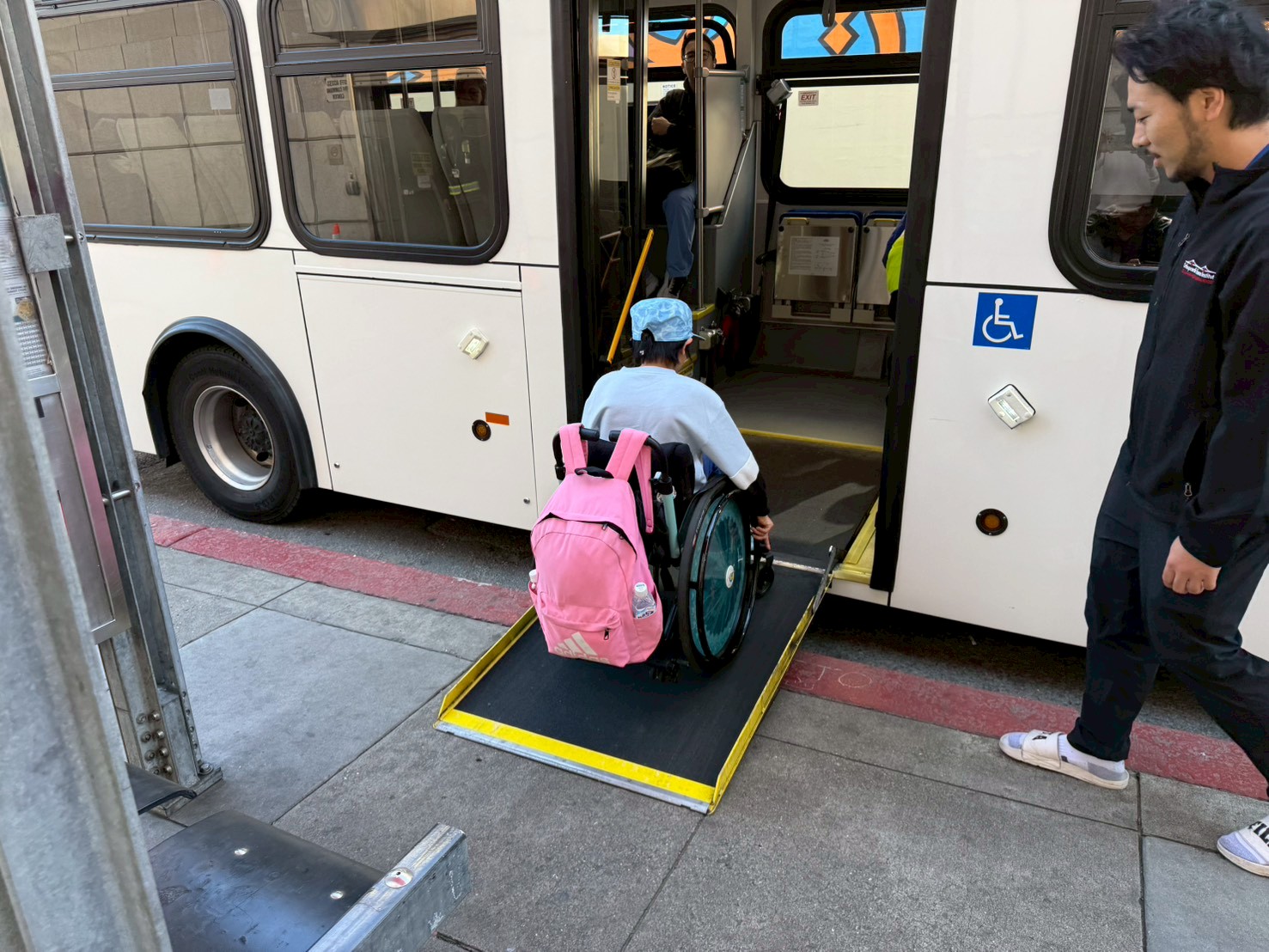 バスはバリアフリーで、車いすもスムーズに乗車できました。
