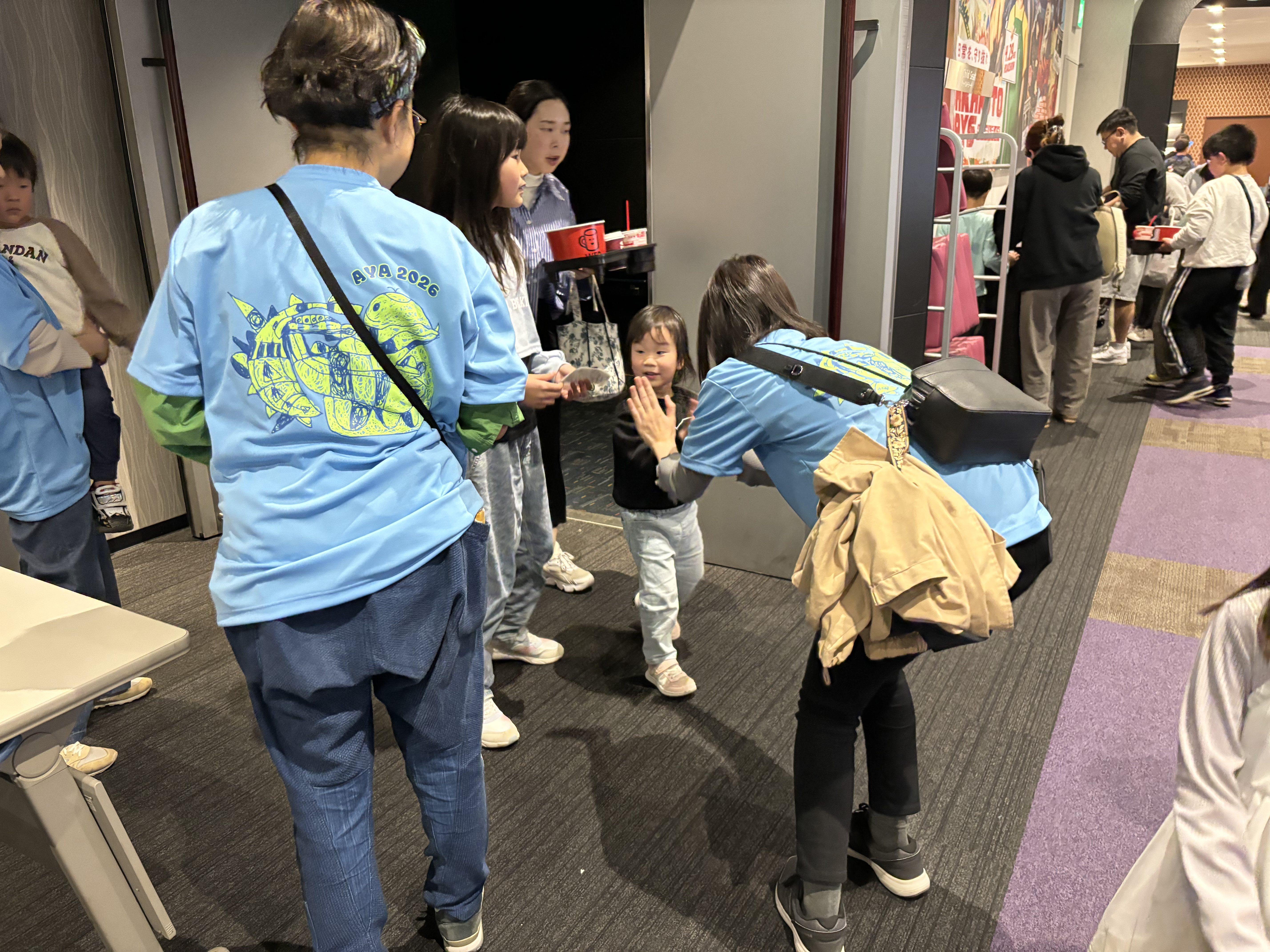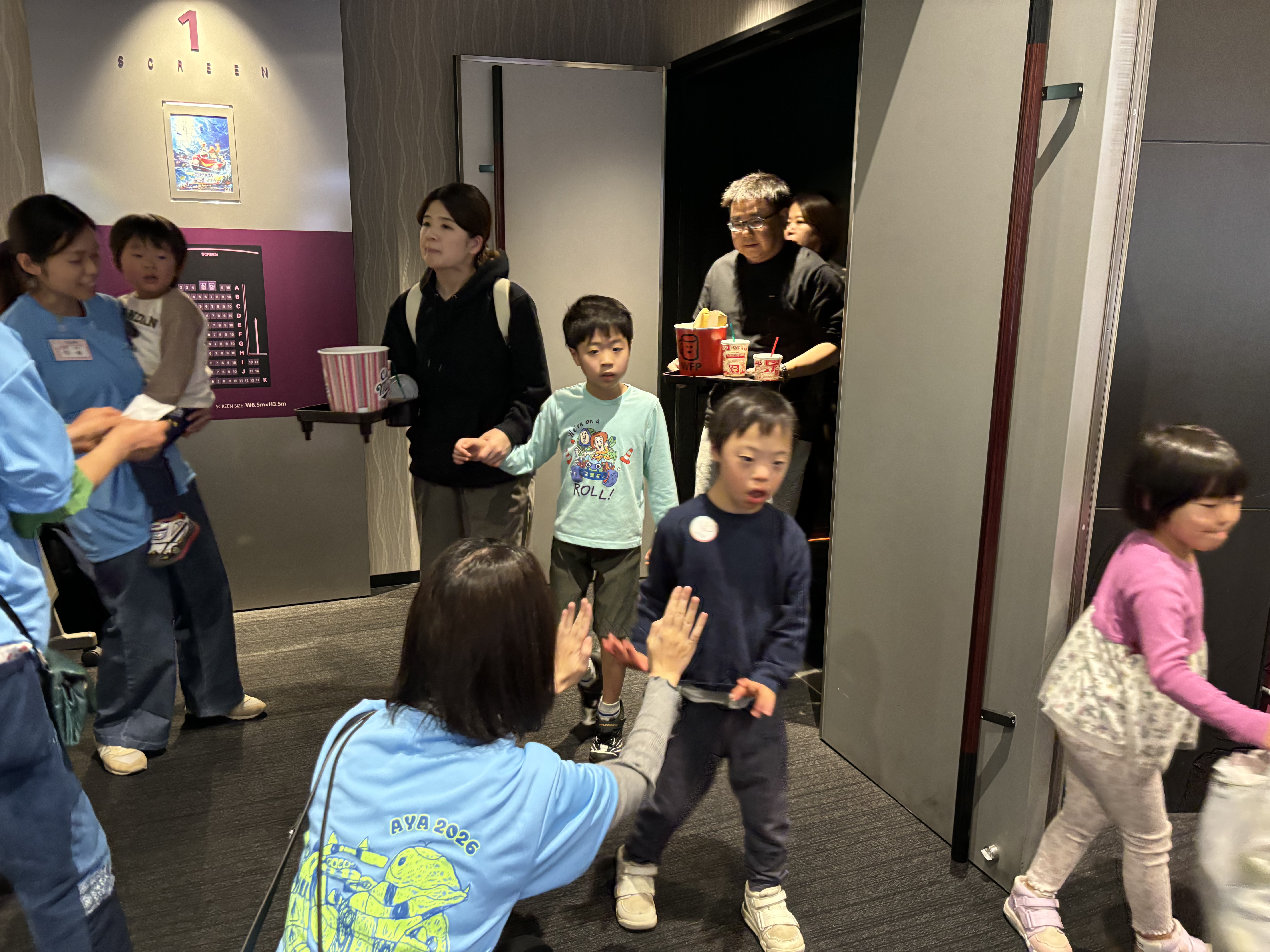 上映終了後、会場には拍手が広がりました。「楽しかった人?」という呼びかけに対し、子どもたちが元気よく手を挙げてくれました。劇場を出る際には、ボランティアの皆さまとハイタッチを交わしながら退場する姿が見られ、「また来るね」「初めてでしたがとてもよかったです」といった声も聞かれました。