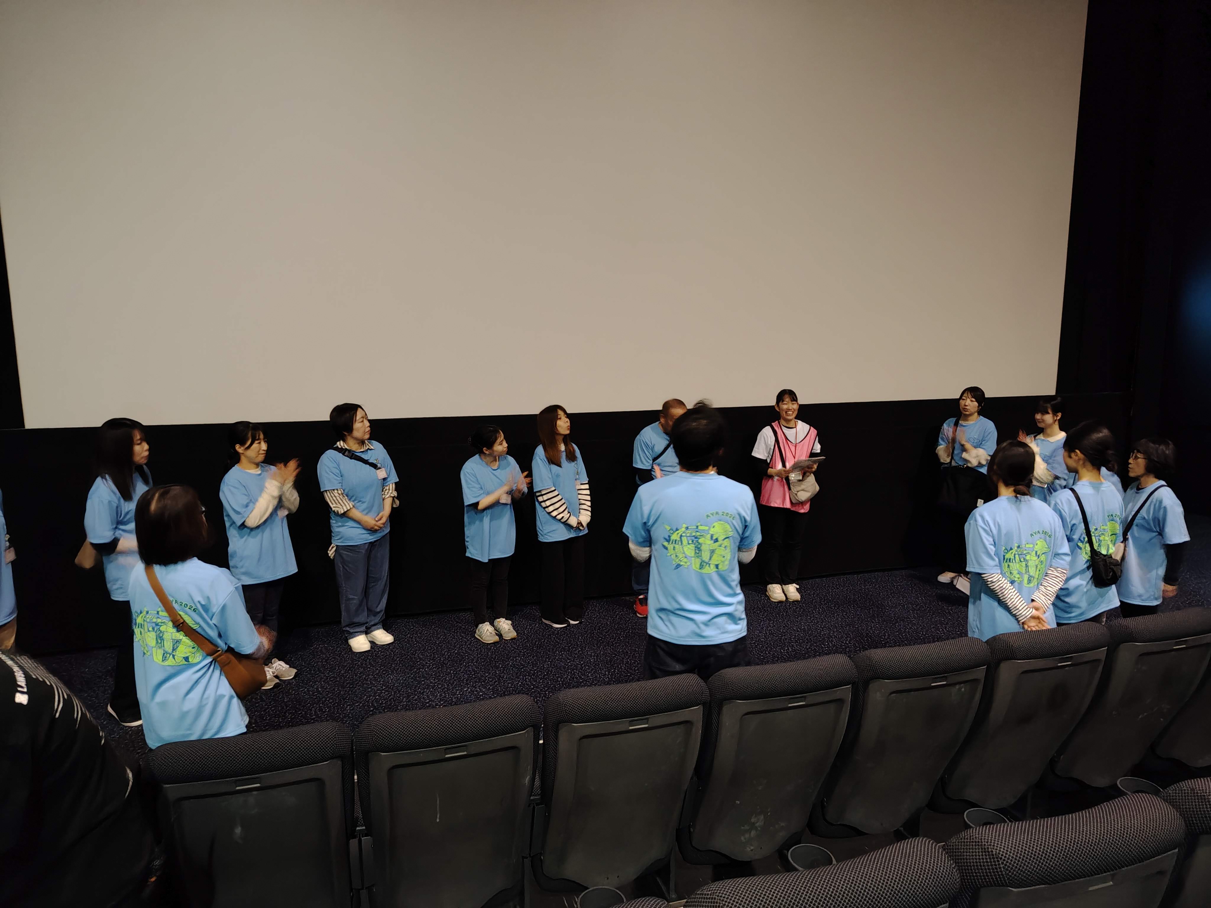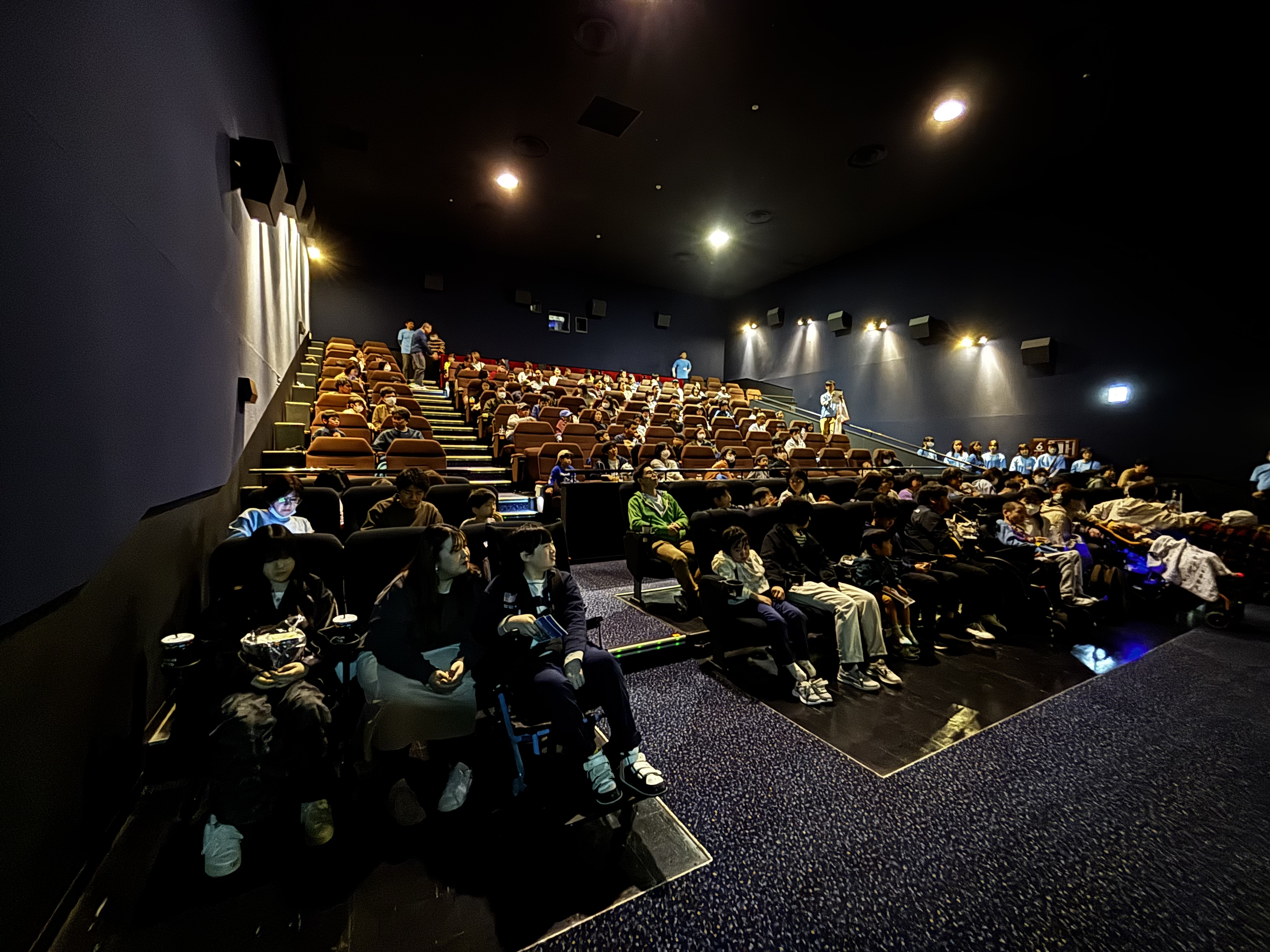 シアター内は通常の上映よりも少し明るく、手元が見えるくらいの照明で上映を行いました。