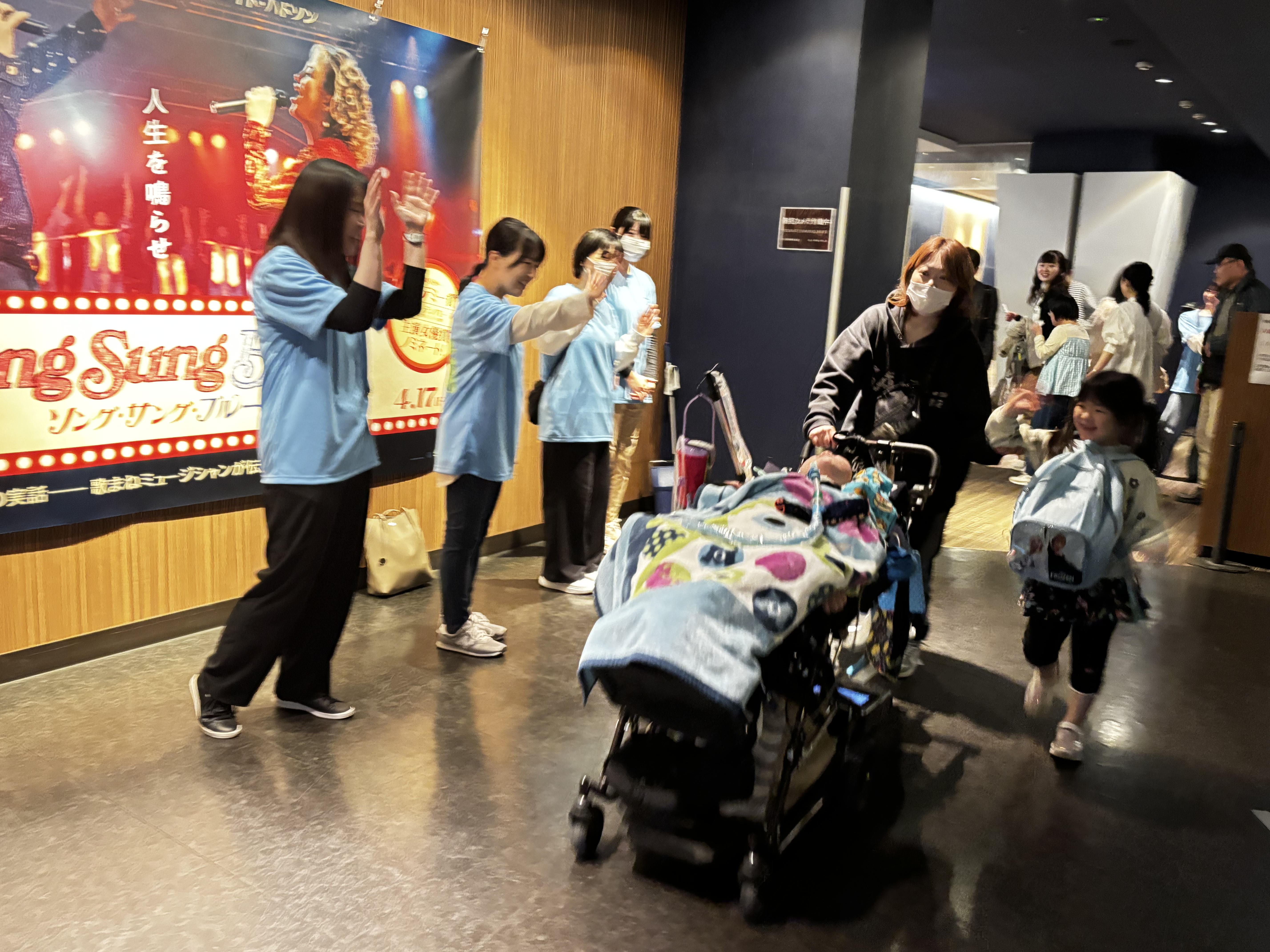 上映中はシアター前で待機し、子どもたちと関わる様子や、会場全体を見守る姿が見られました。