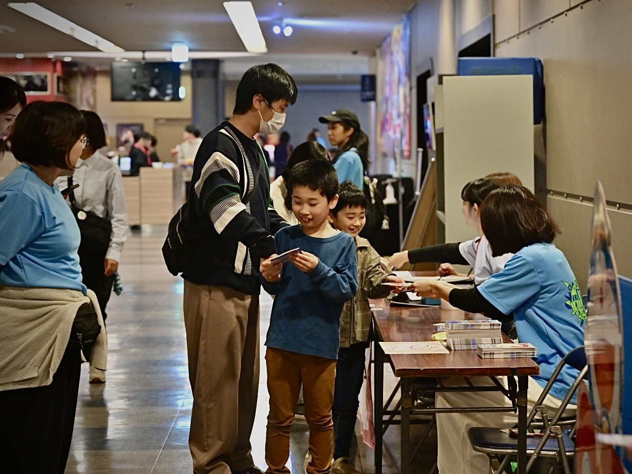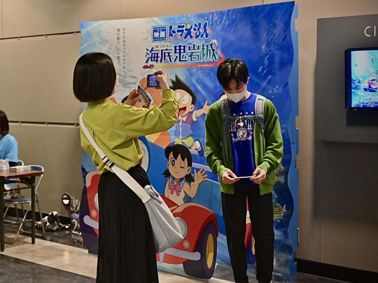 初めての映画館に少し緊張した様子のお子さんや、ドラえもんのぬいぐるみを抱き抱えて来てくれたお子さんの姿もありました。