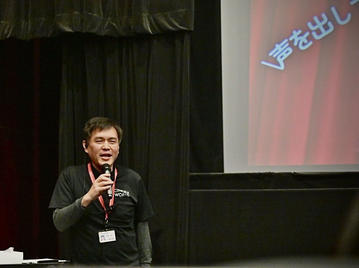 シアター内は通常の上映よりも少し明るく、手元が見えるくらいの照明で上映を行いました。
