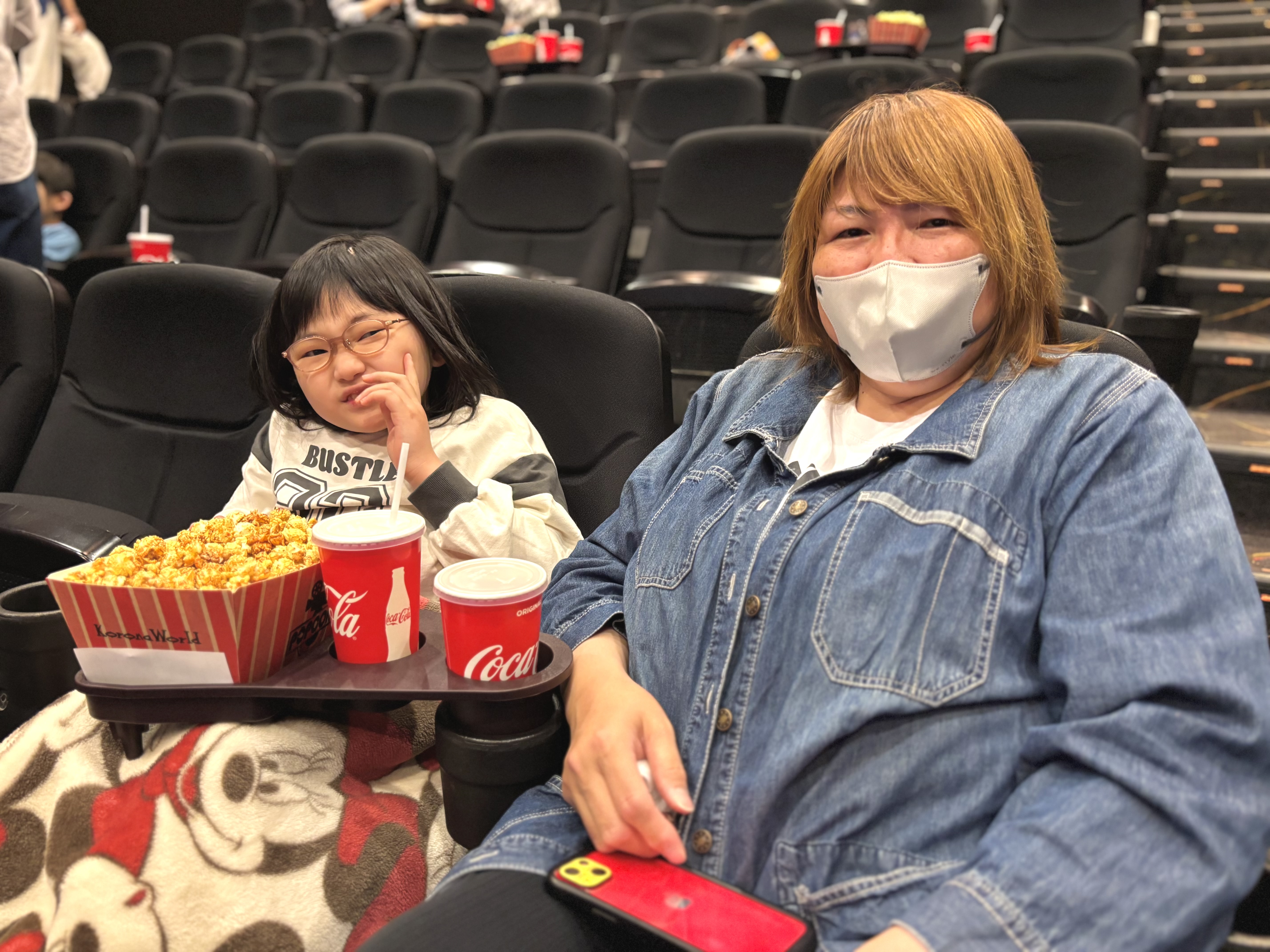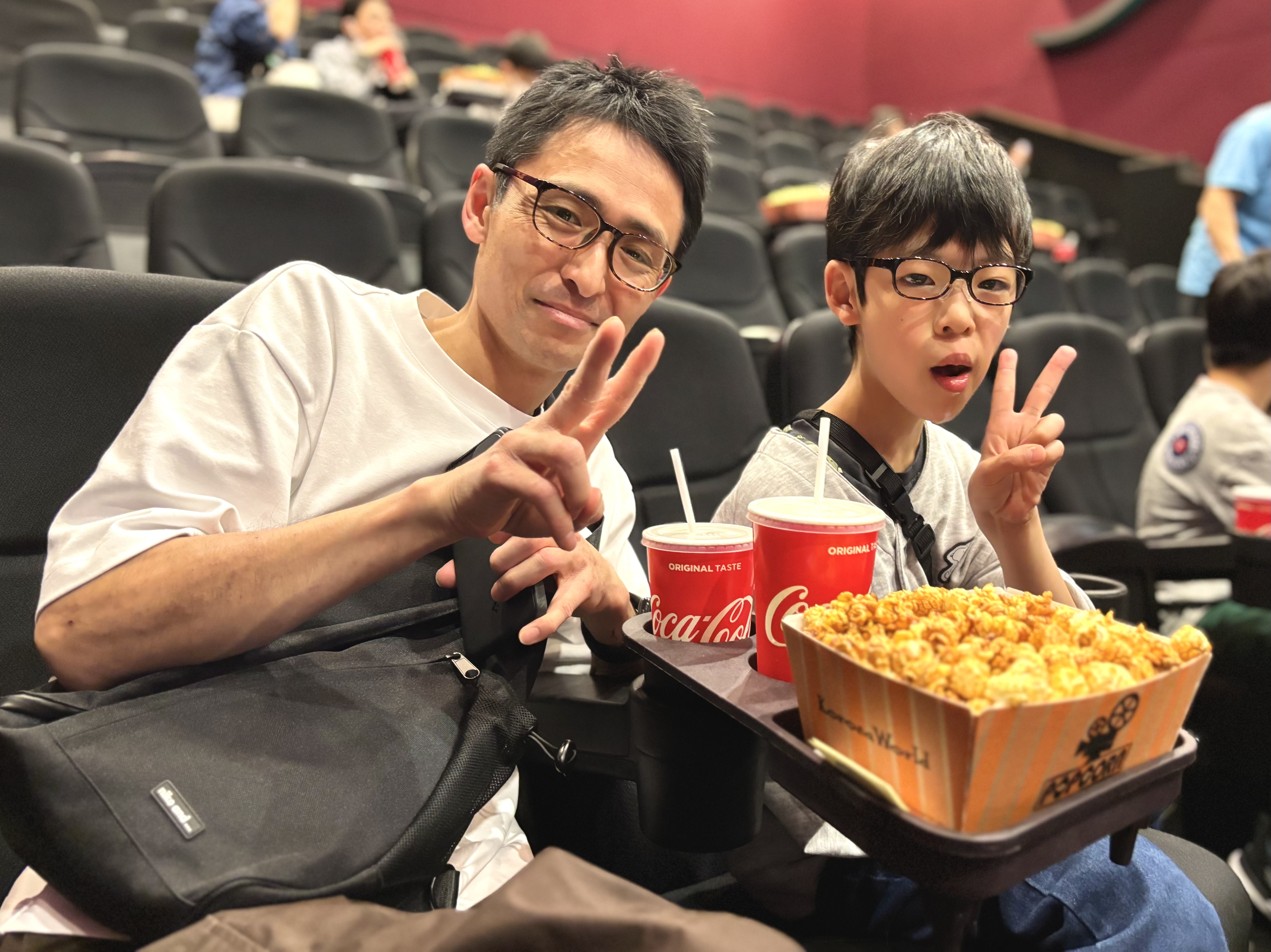 劇場内では、ポップコーンを食べたりお話をしたりして、上映開始を楽しみに待っている様子の皆さんでした。