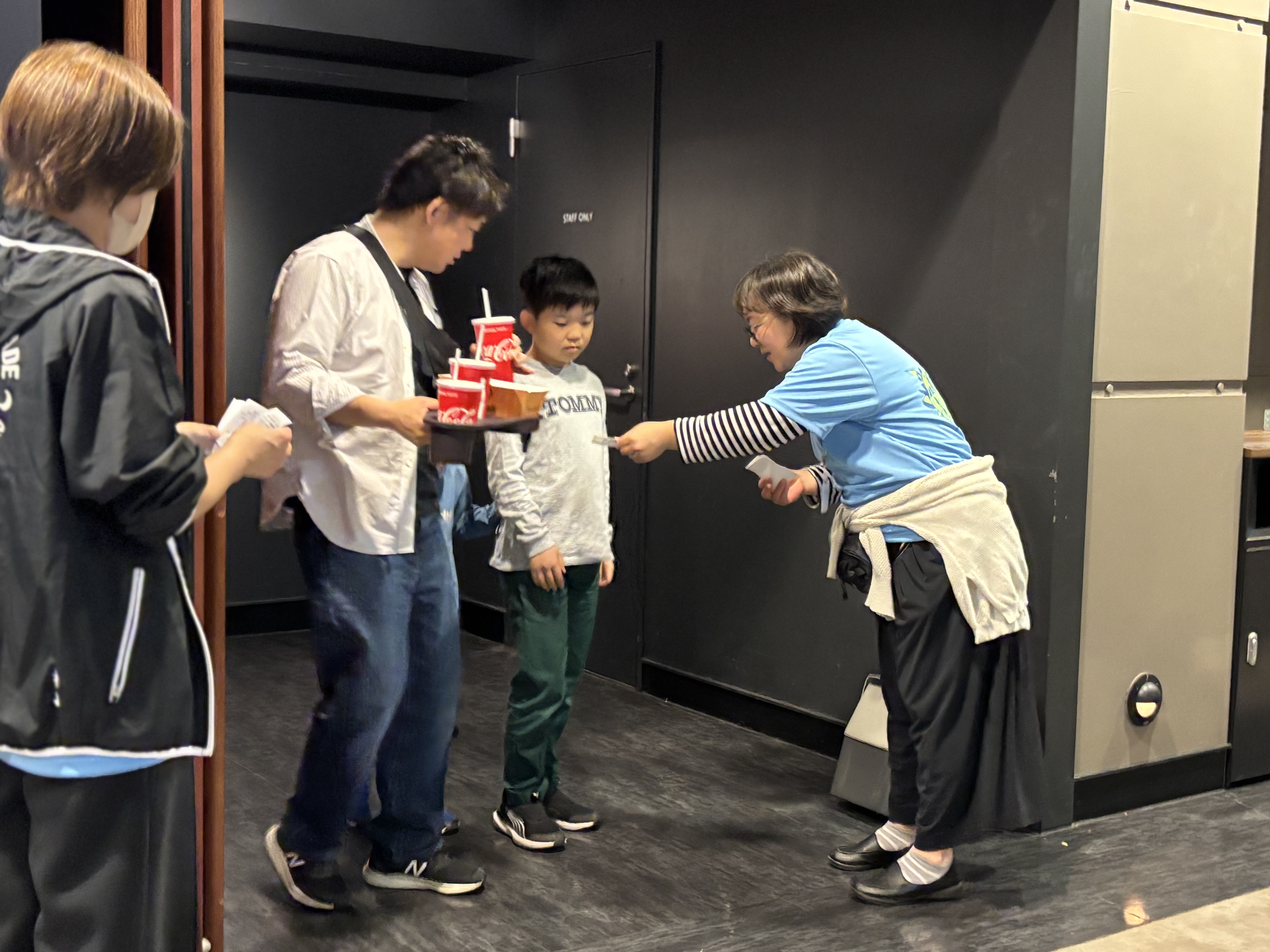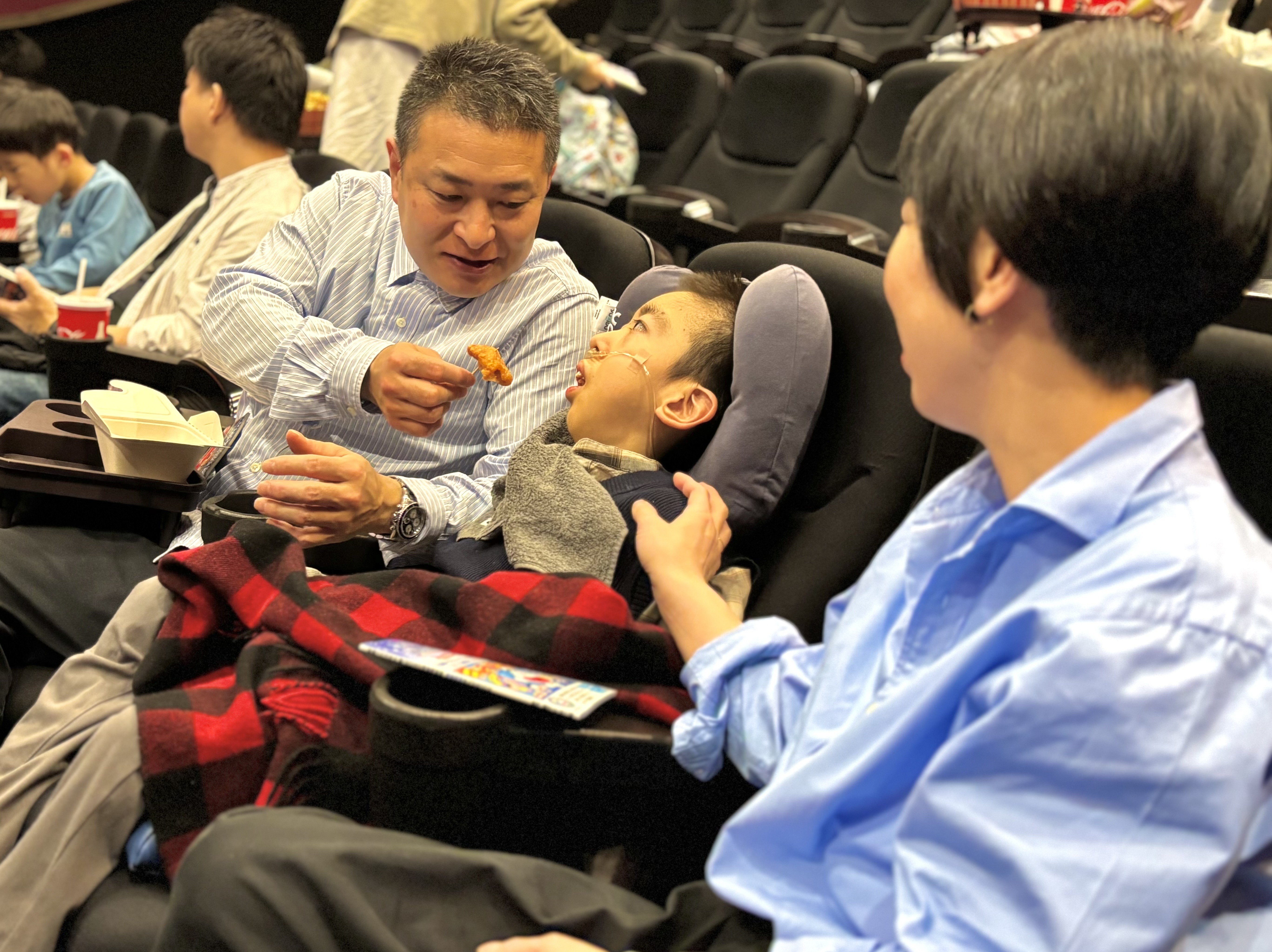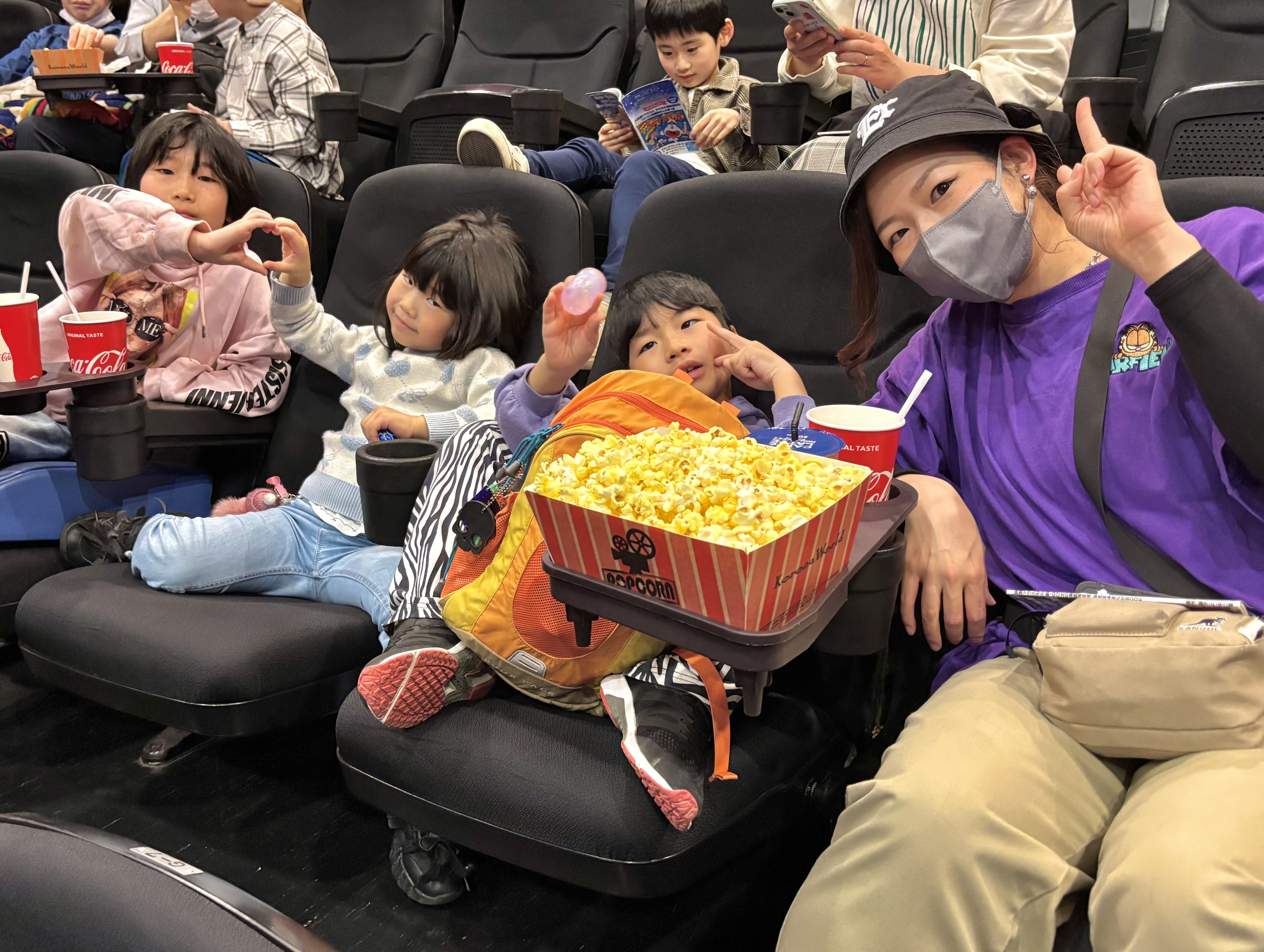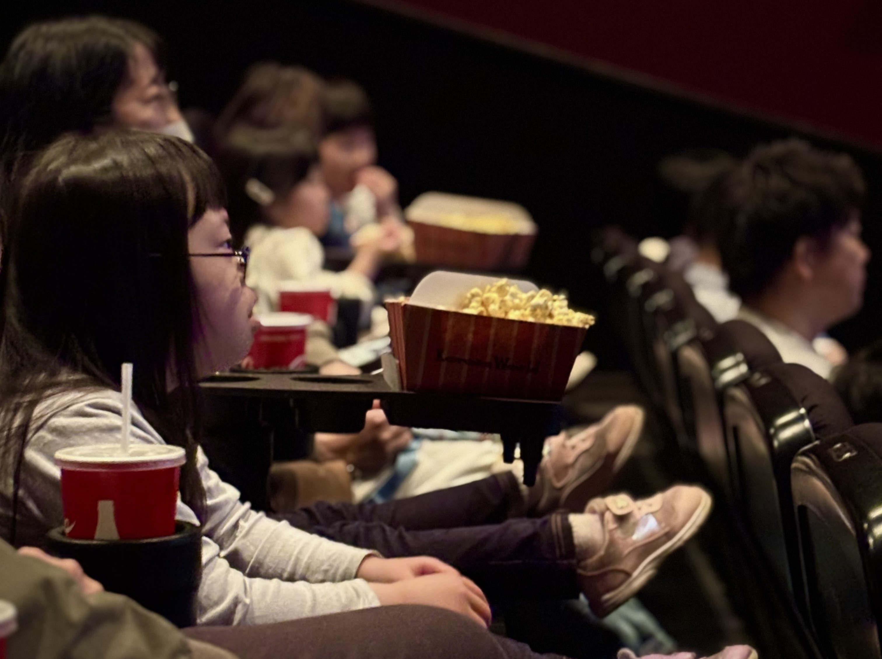 受付を済ませた後、大きなポップコーンやジュースを抱えて満面の笑みでシアターに入っていく子ども達。