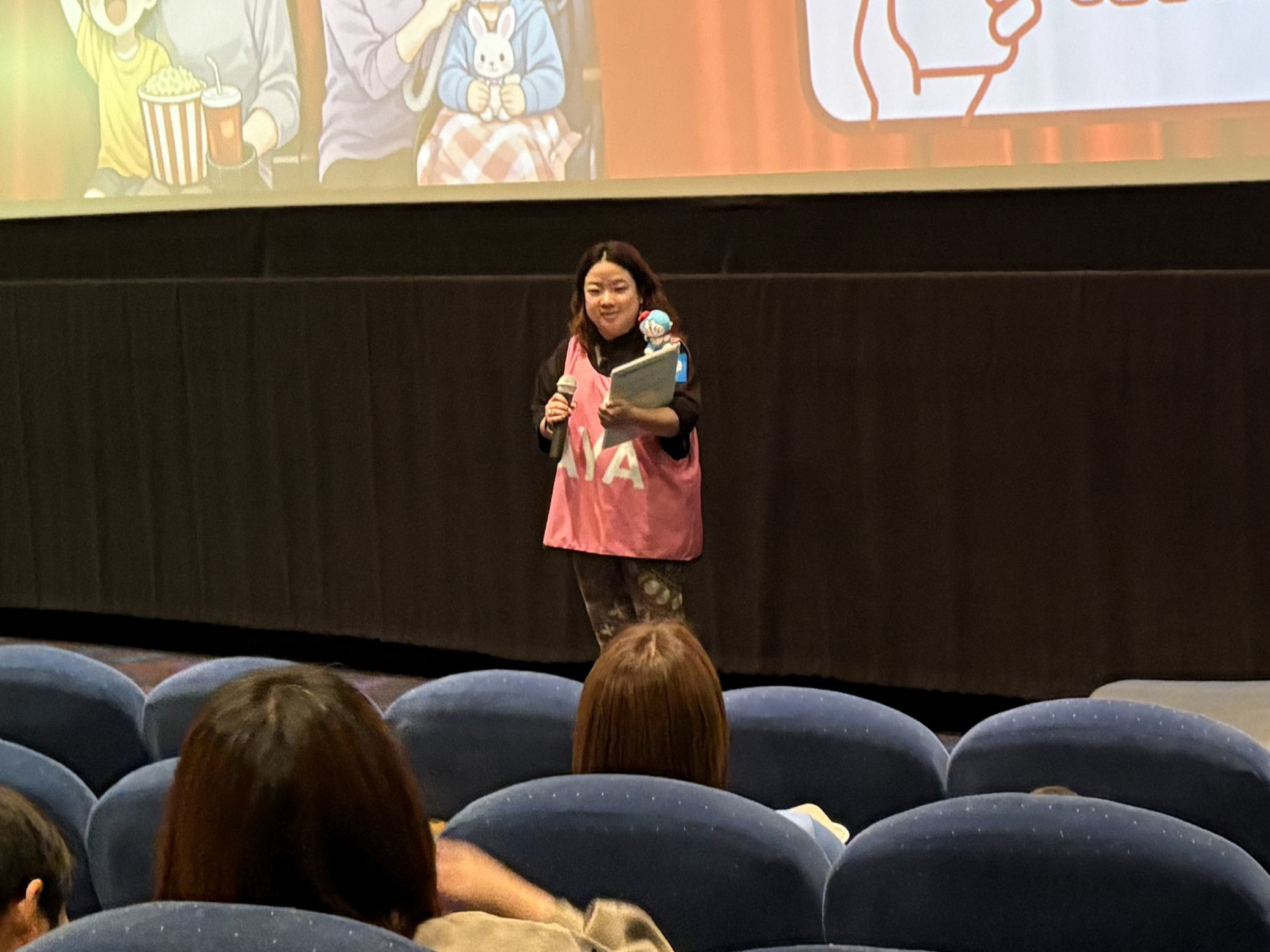 シアター内は通常の上映よりも少し明るく、手元が見えるくらいの照明で上映を行いました。