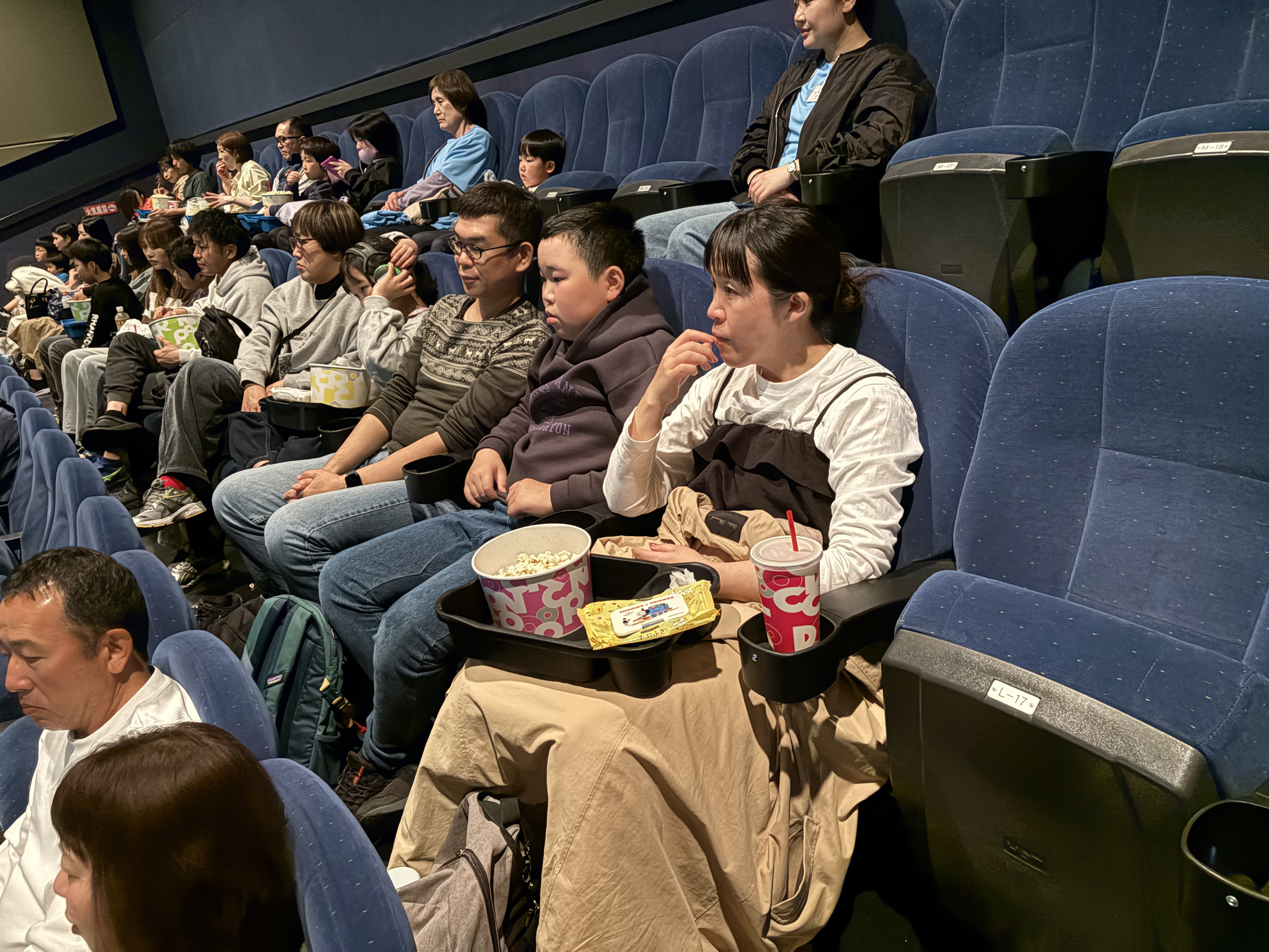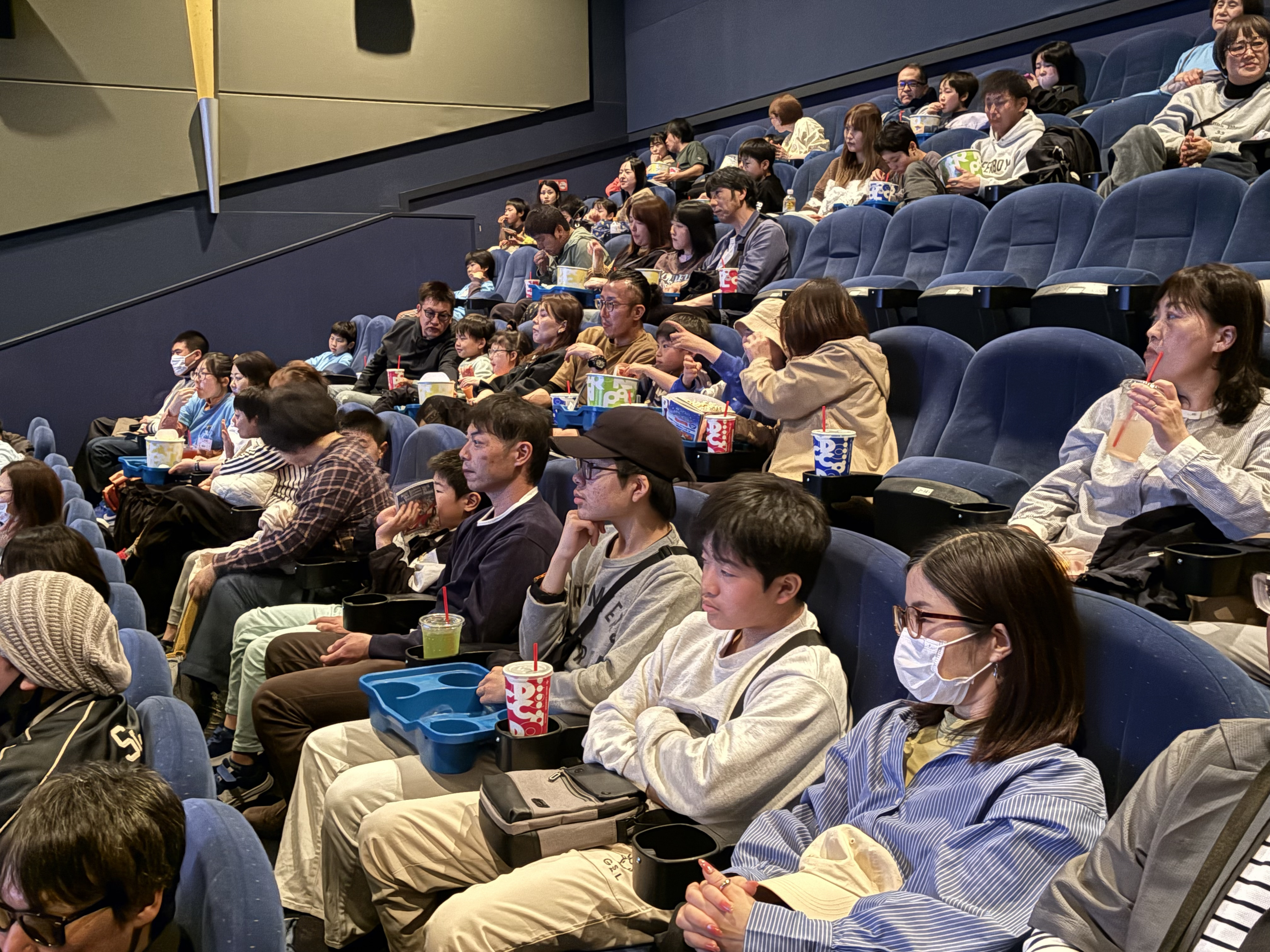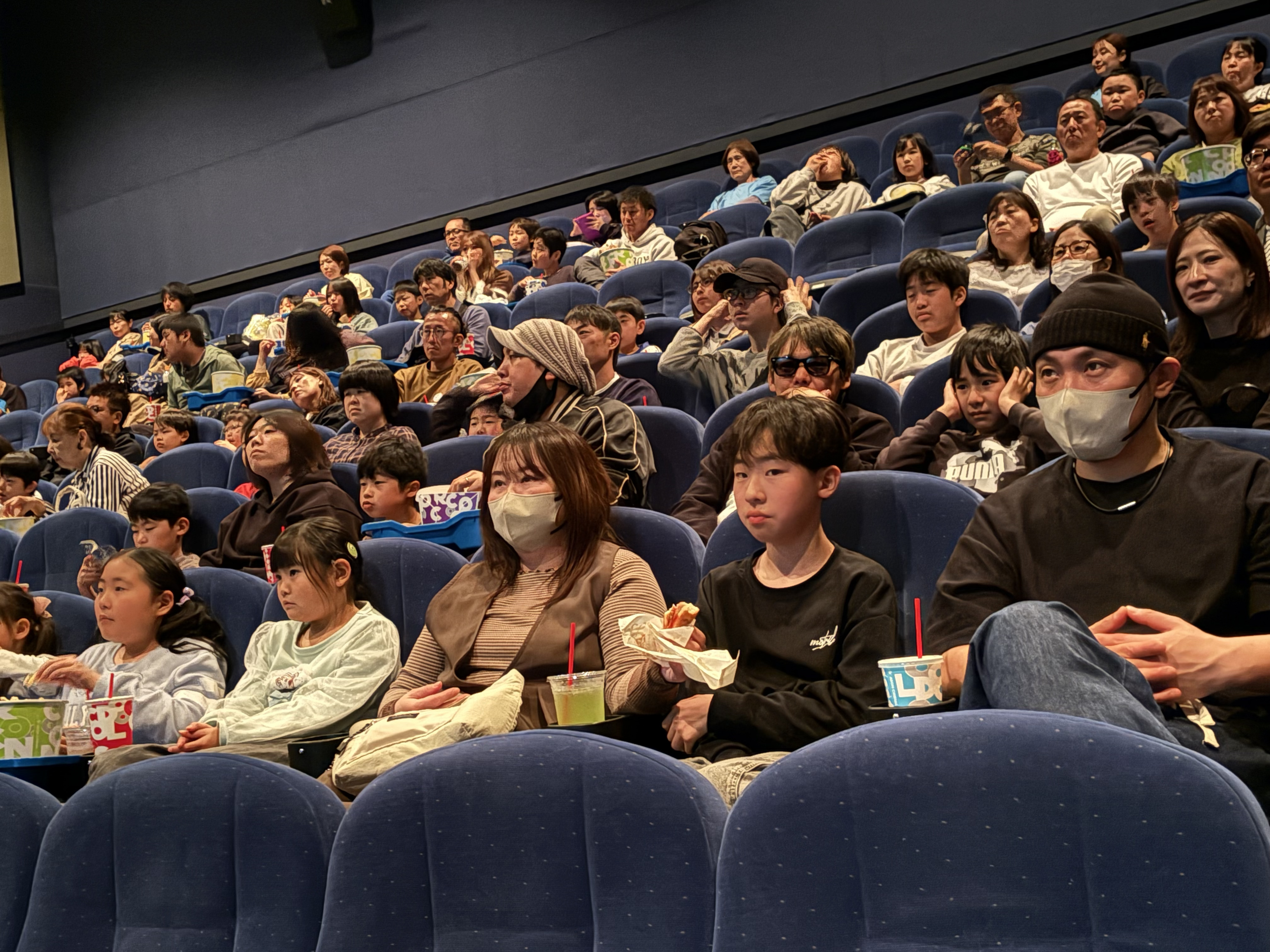 はっと驚いたり、笑い声を上げたりして、リラックスして映画を楽しんでいる様子でした。