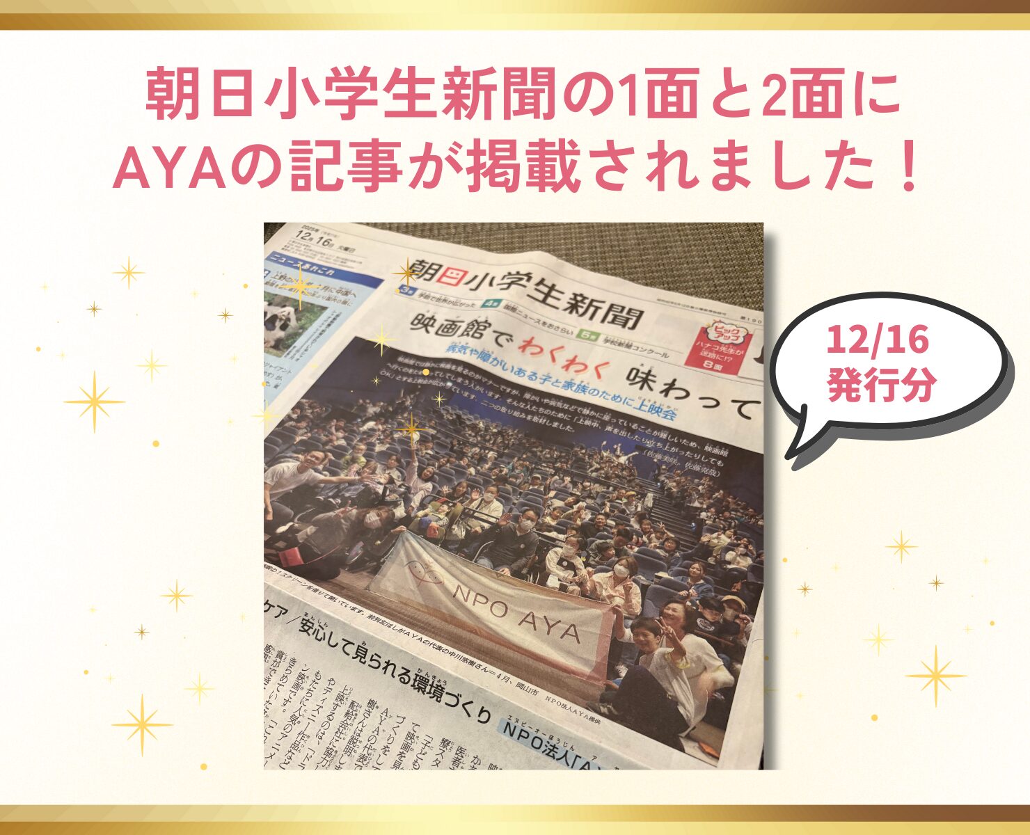【記事掲載のご報告】朝日小学生新聞に NPO法人AYAに関する記事が掲載されました!